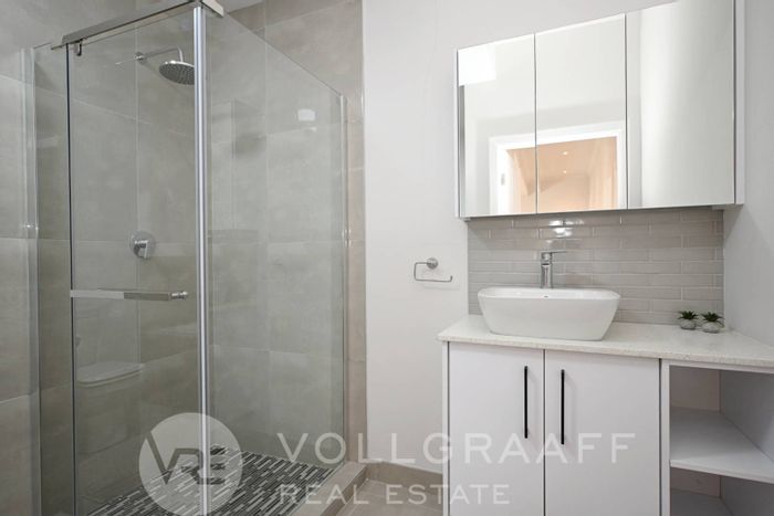 Private corner erf in a peaceful neighbourhood with generous indoor–outdoor flow and entertaining ease — built-in braai, boma and self-contained flat. Three bedrooms, two bathrooms, double garage.