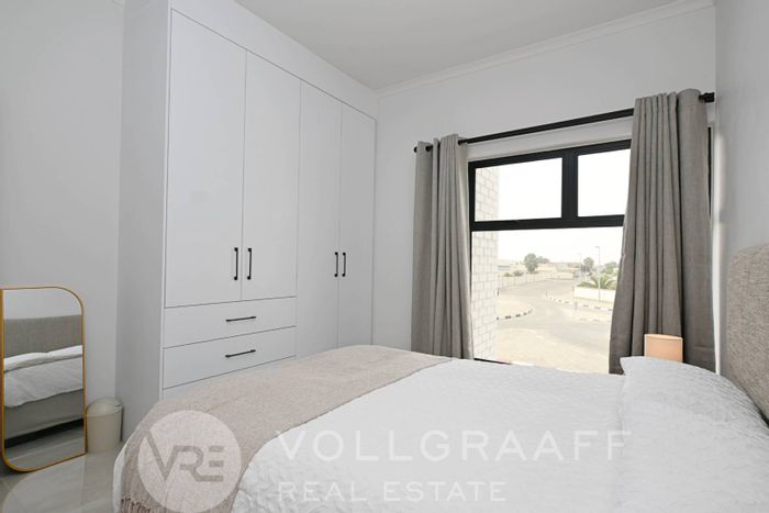 Coastal modern living in Swakopmund’s Extension 9, with bright open-plan social areas, private yard and designer kitchen with scullery. Four en-suite bedrooms, double garage.