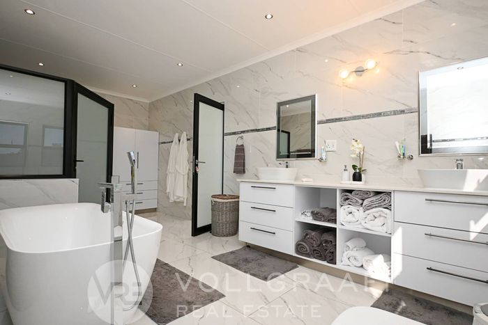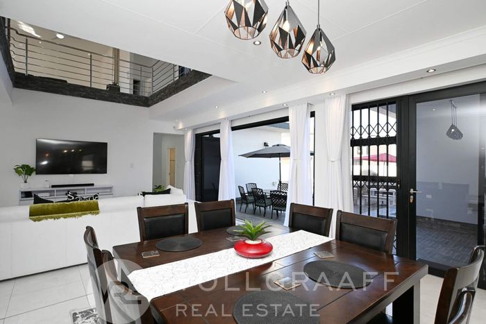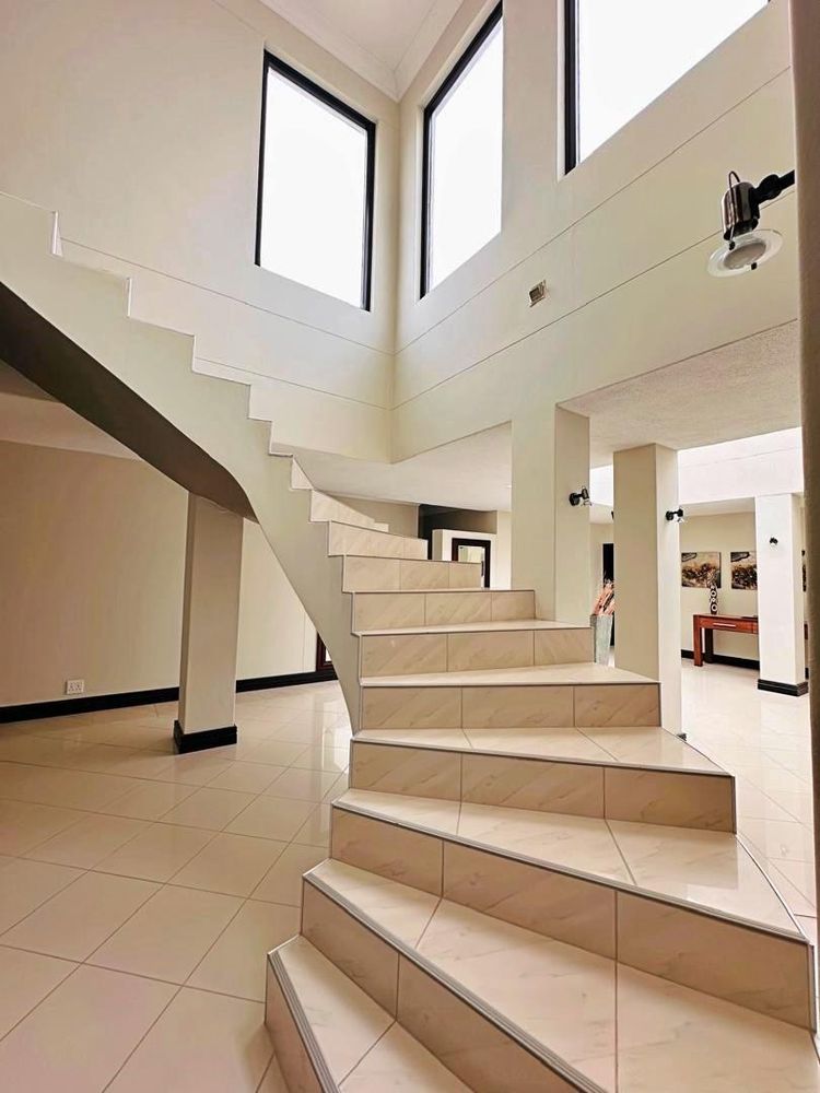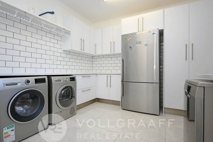 On the lower level, you'll find three distinct living areas, including a formal lounge, a cozy TV room, and an elegant cigar lounge. The open-plan dining room seamlessly connects to the kitchen, which is complemented by a scullery and convenient laundry facilities. Additionally, this level features four spacious bedrooms and three well-appointed bathrooms.