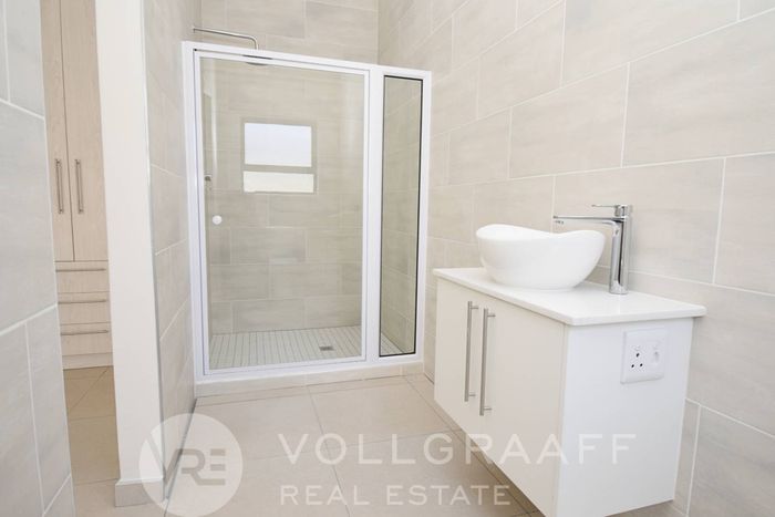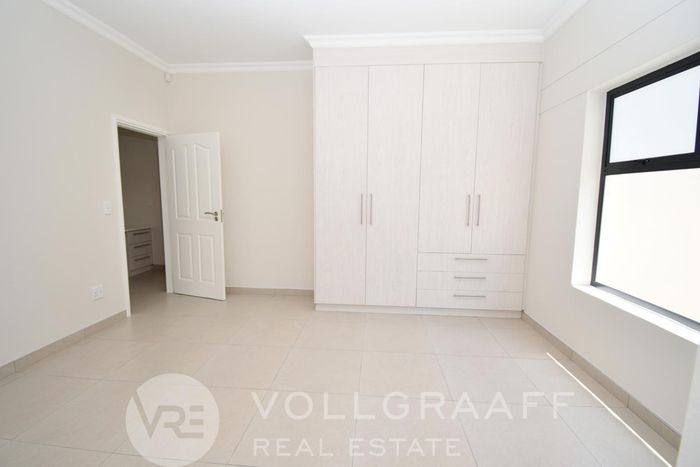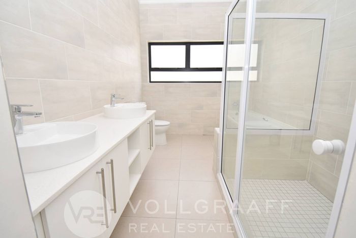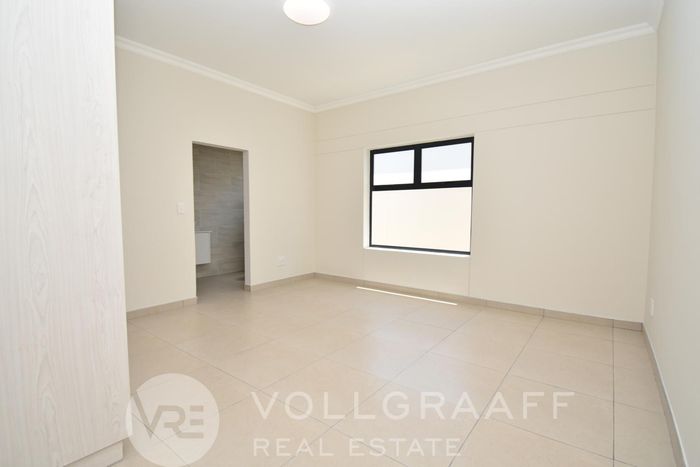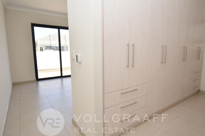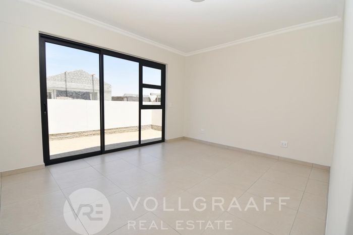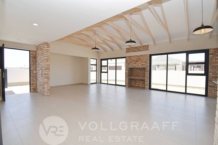 Coastal lifestyle in Swakopmund’s Waterfront — light-filled, newly built family home with outdoor braai and flexible home office. Four bedrooms, four bathrooms and triple garage.