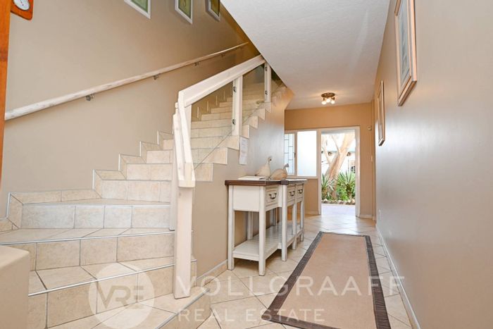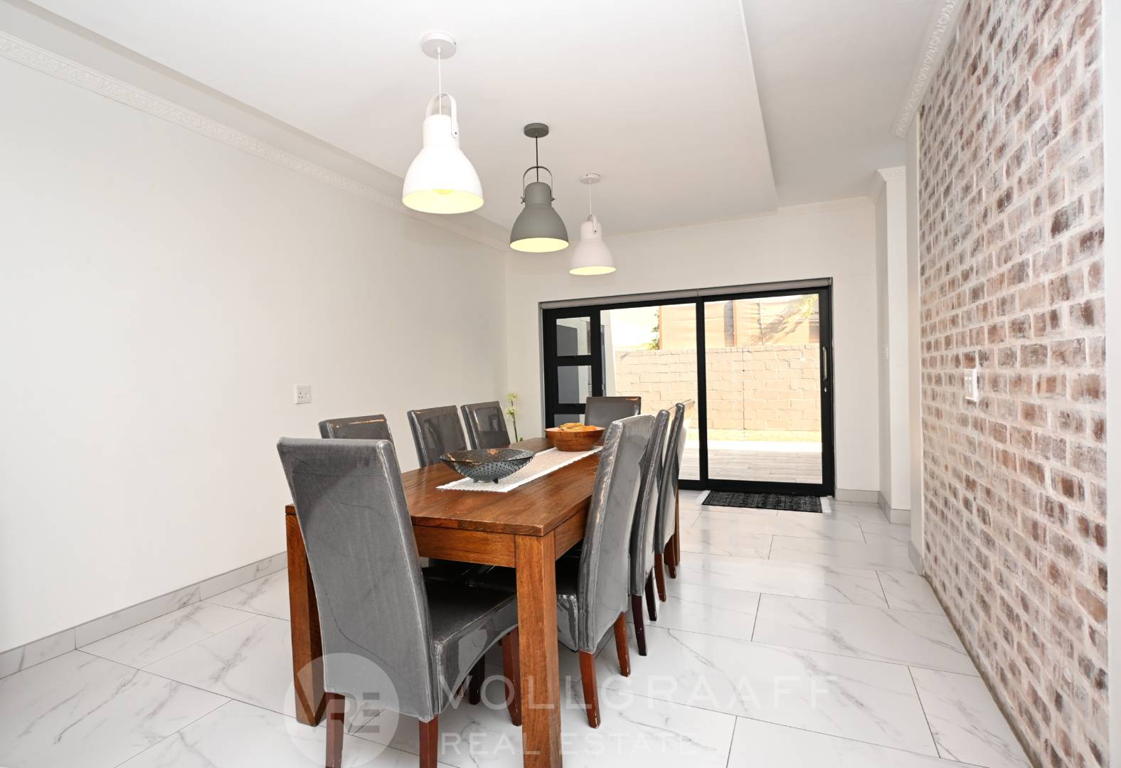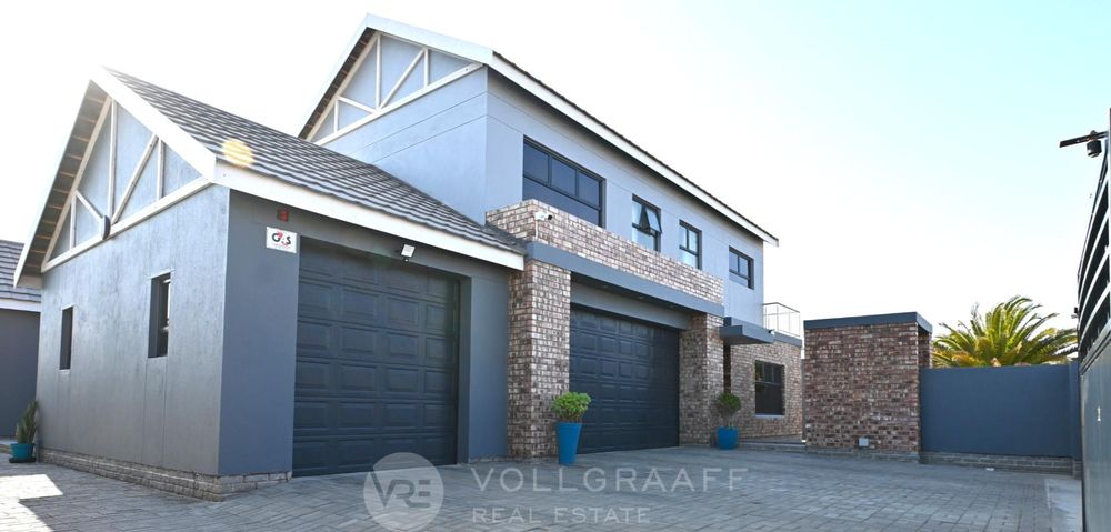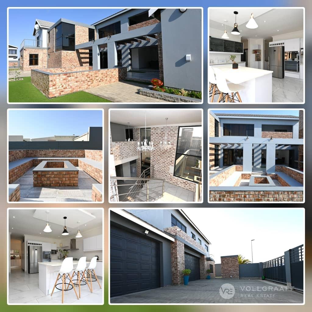 From the moment you arrive at this striking double-storey home, the bold combination of exposed brick and sleek grey plaster makes a lasting impression. Behind the secure boundary walls, a paved driveway sweeps up to double automated garages and a welcoming entrance that hints at the lifestyle within.