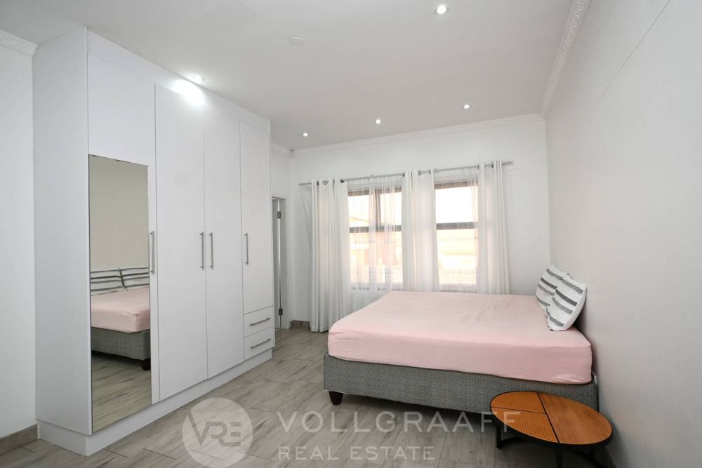 The heart of the home is the designer kitchen: a sleek space with a central island, glossy cabinetry, and every convenience tucked neatly into a scullery, laundry, and walk-in pantry. Here, style meets practicality — whether it’s quick breakfasts or weekend entertaining.