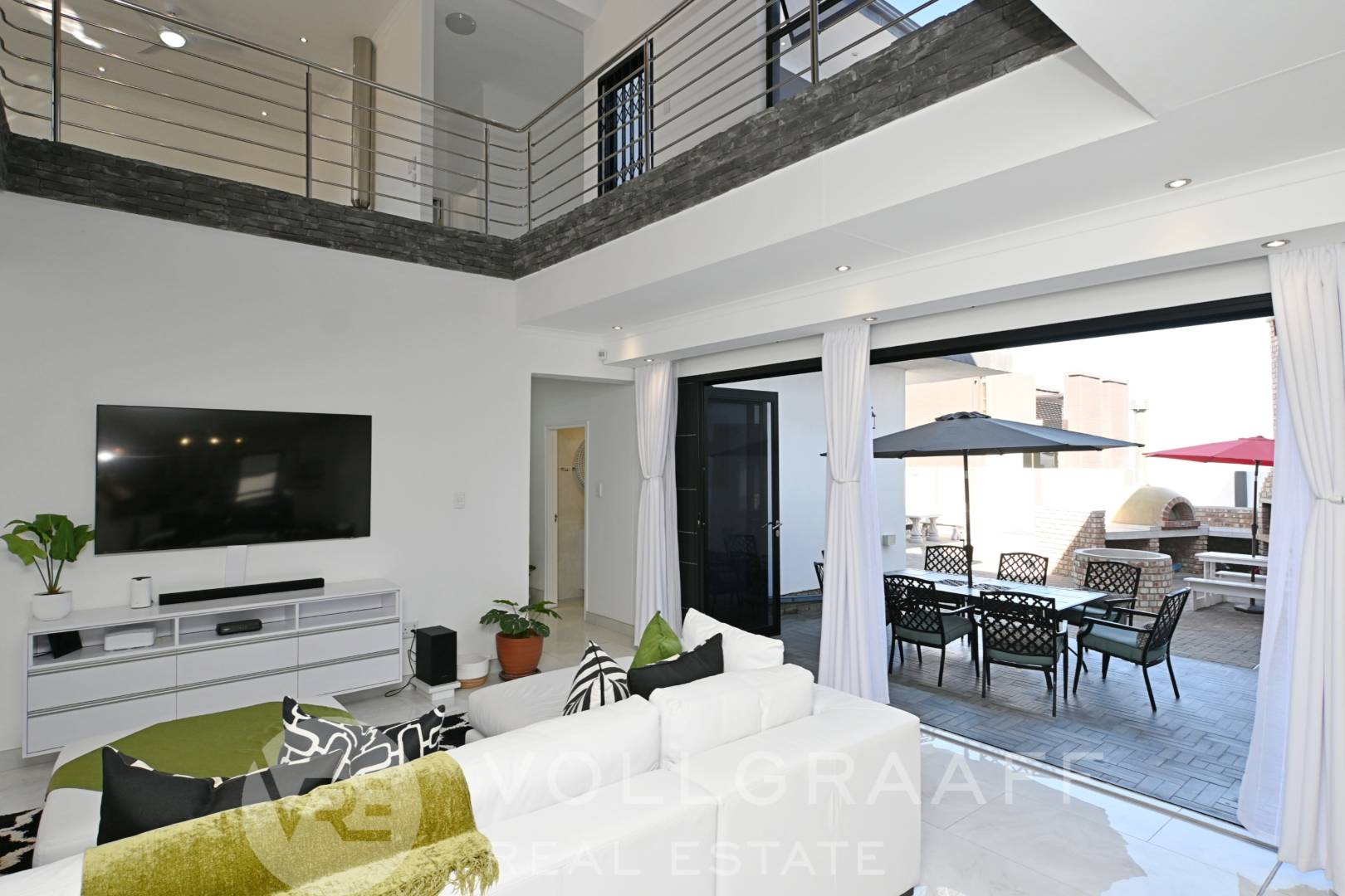 Designed with comfort and practicality in mind, the ground floor welcomes you into a double-volume lounge with elegant lighting and stacking doors that open to a tiled entertainment area. Here you’ll find an outdoor BBQ, pizza oven, bonfire pit, and an outdoor shower — perfect for rinsing off after beach visits. The patio is also prepped for a Jacuzzi with fittings already in place. A trough sink and washing line are tucked behind the home.
