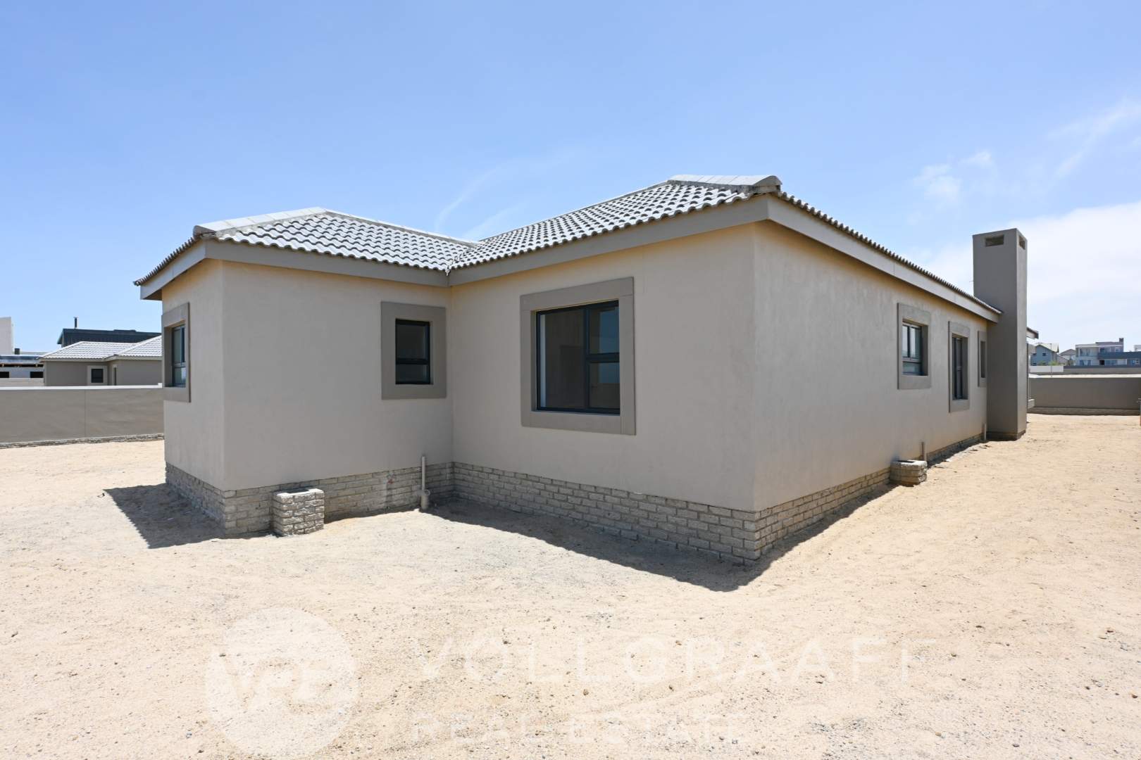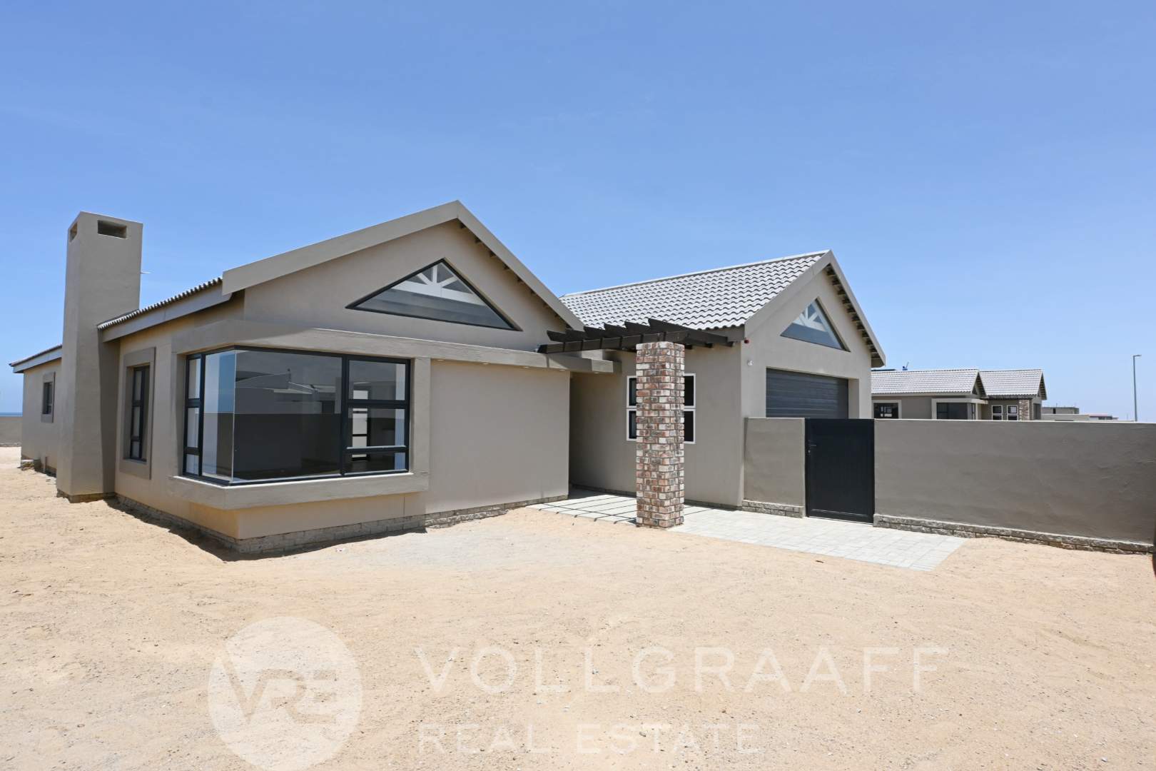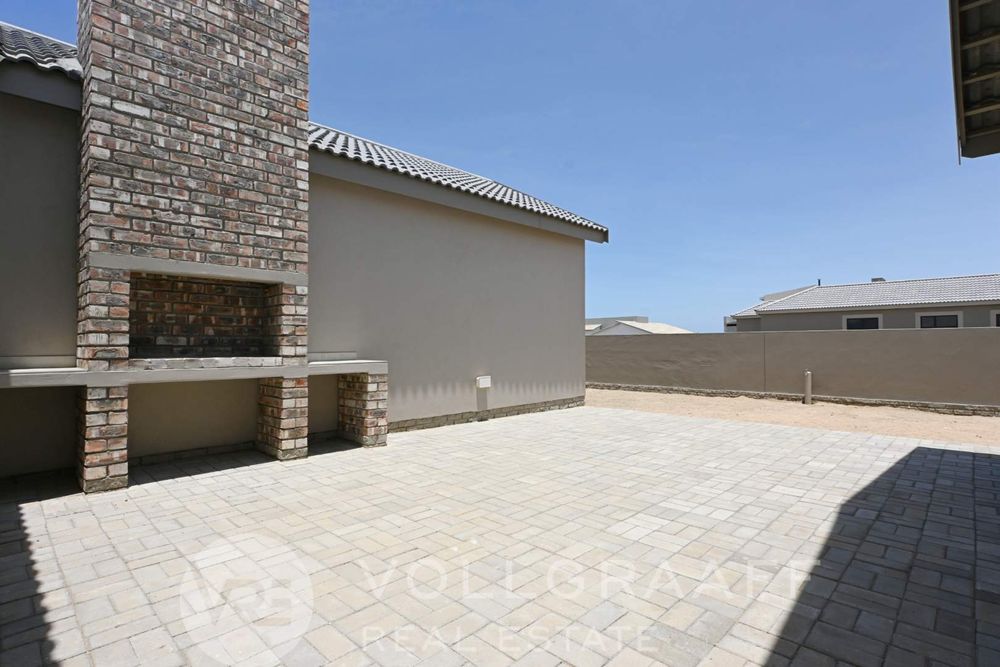 An indoor braai area enhances the entertainment appeal, seamlessly connecting to a wind-protected courtyard—perfect for enjoying outdoor living in all seasons.