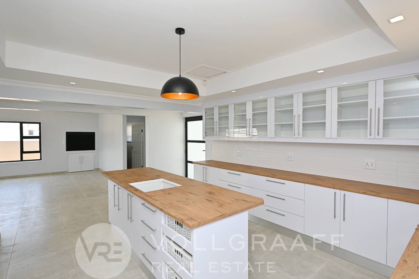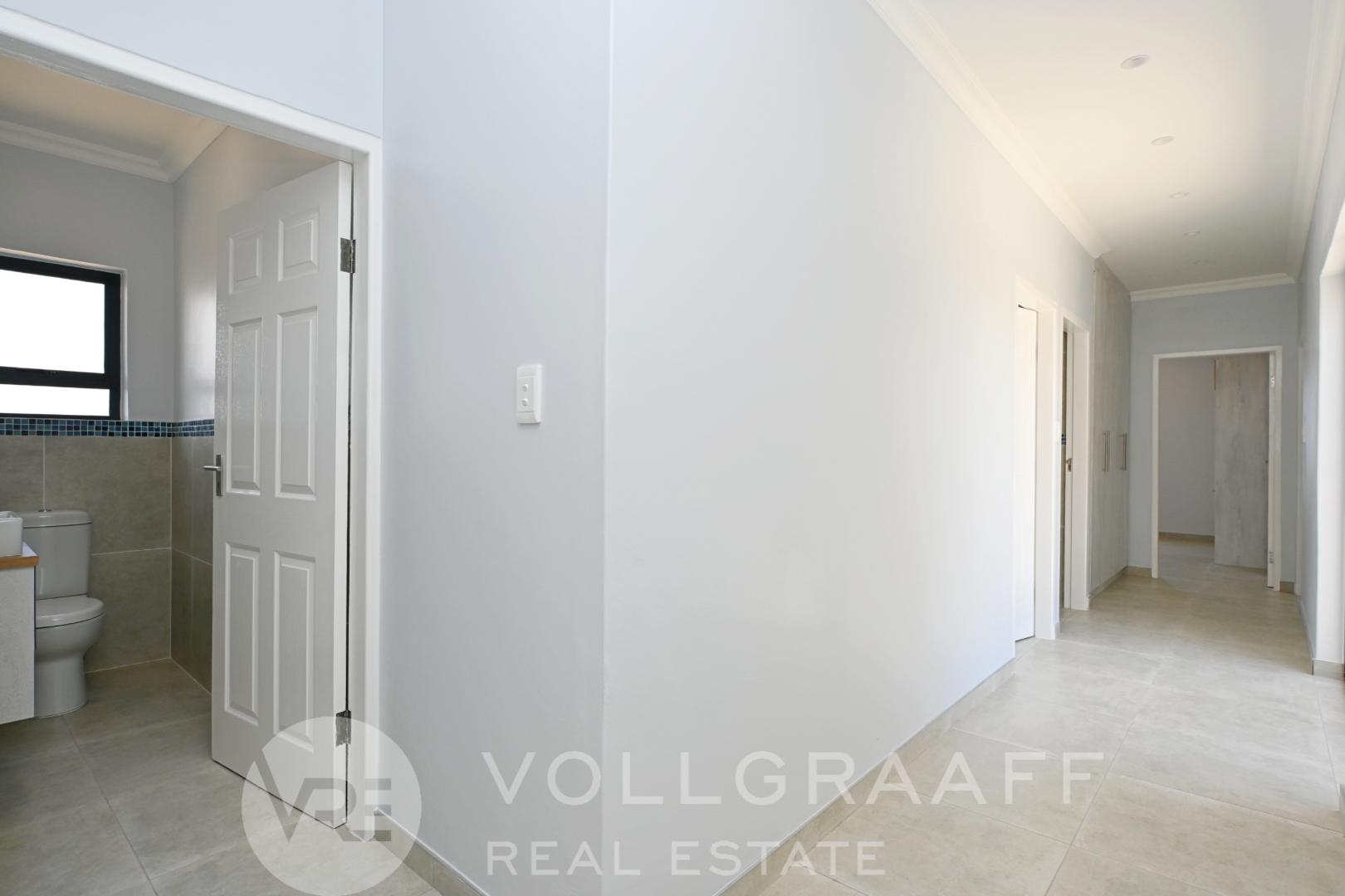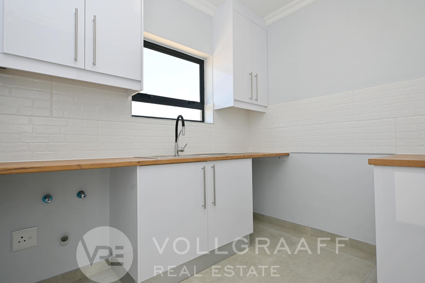 Step into a welcoming reception area that flows effortlessly into a spacious open-plan living and dining area, ideal for both everyday living and entertaining. The home features a stylish kitchen fitted with granite countertops, ample built-in cupboards, and a separate scullery for added practicality.