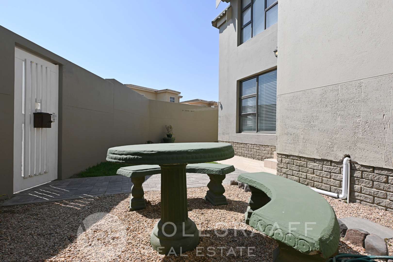 Being a corner unit, this townhouse features an expansive garden with high walls, offering enhanced privacy and an ideal space for outdoor entertaining, complete with a braai area.