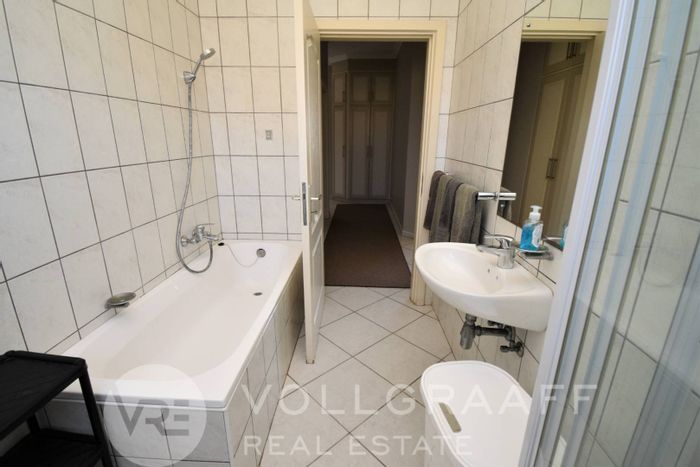 Private corner erf in a peaceful neighbourhood with generous indoor–outdoor flow and entertaining ease — built-in braai, boma and self-contained flat. Three bedrooms, two bathrooms, double garage.