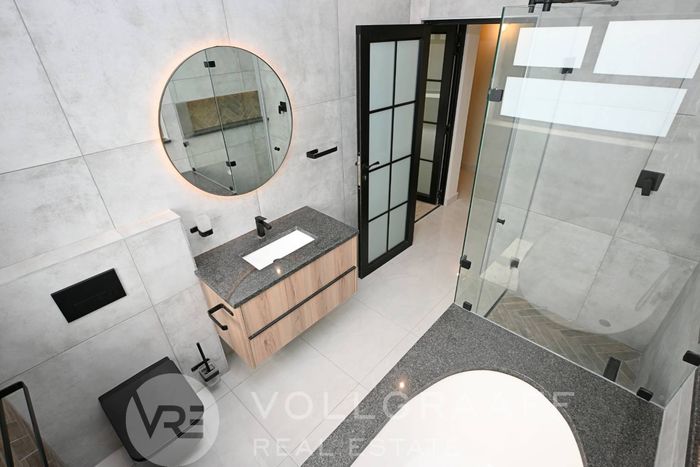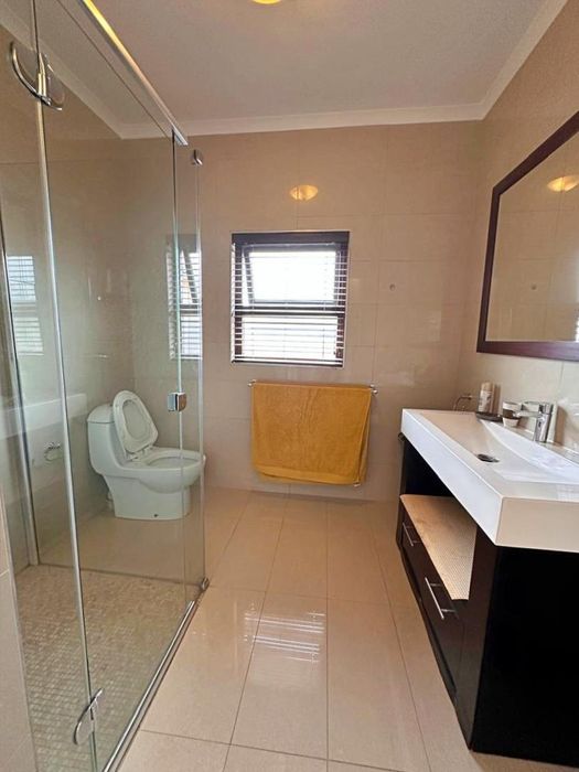 Private corner erf in a peaceful neighbourhood with generous indoor–outdoor flow and entertaining ease — built-in braai, boma and self-contained flat. Three bedrooms, two bathrooms, double garage.