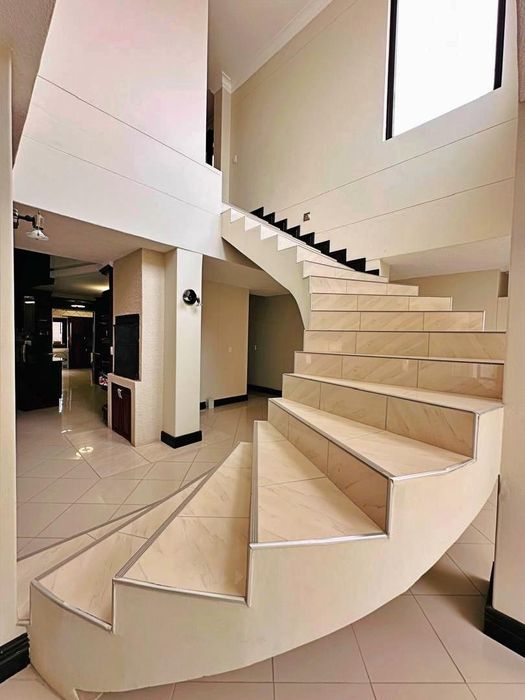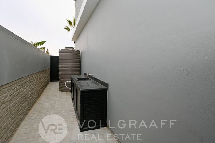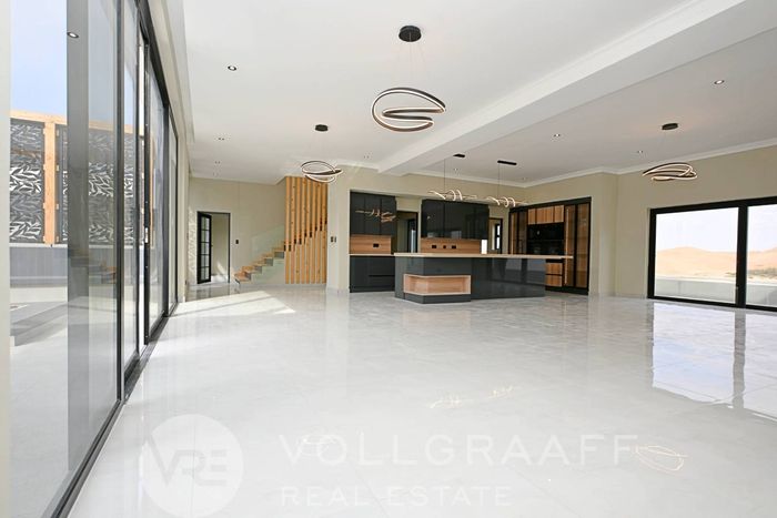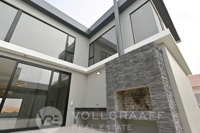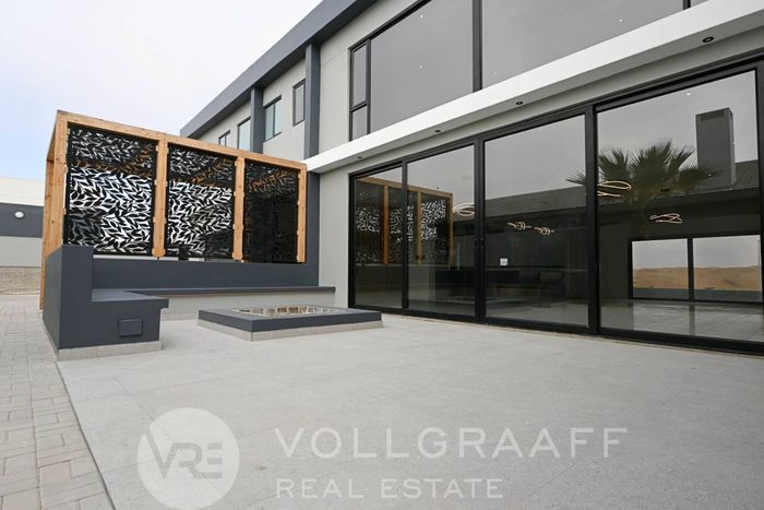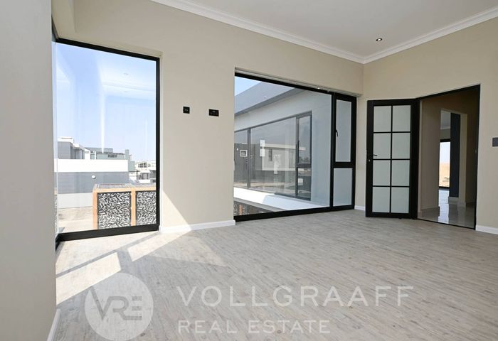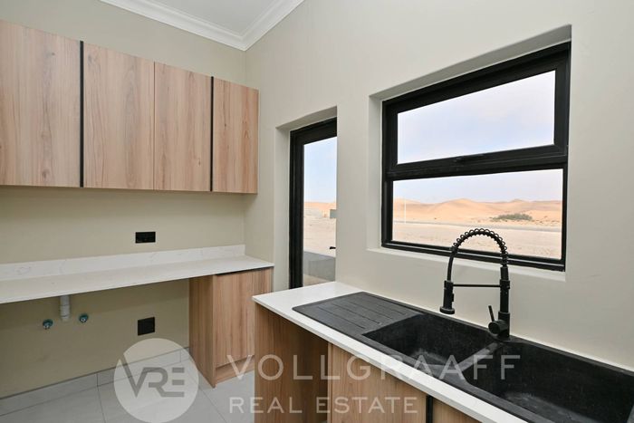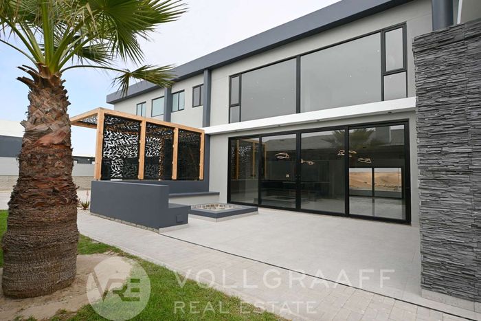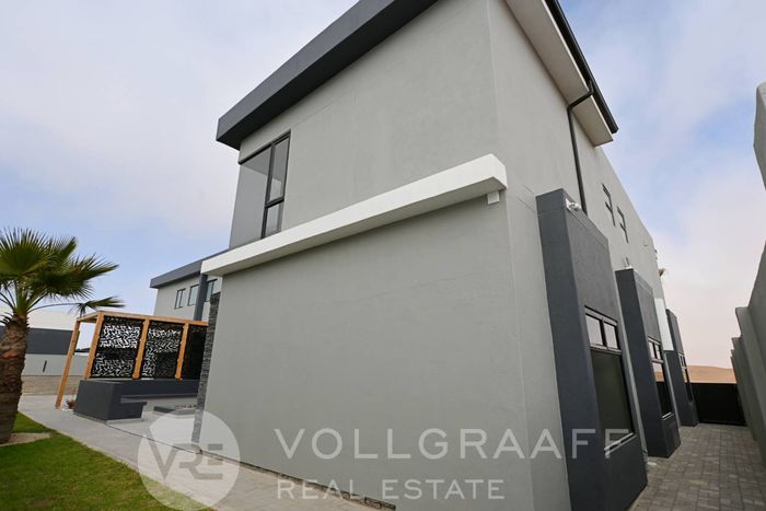 Coastal lifestyle in Swakopmund’s Waterfront — light-filled, newly built family home with outdoor braai and flexible home office. Four bedrooms, four bathrooms and triple garage.