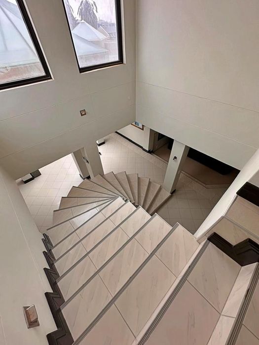Perfect for extended families, this light-filled two-level home on a leafy 1,102 m² plot offers a dramatic hanging spiral staircase, wine cellar, five bedrooms, four baths and two double garages.
