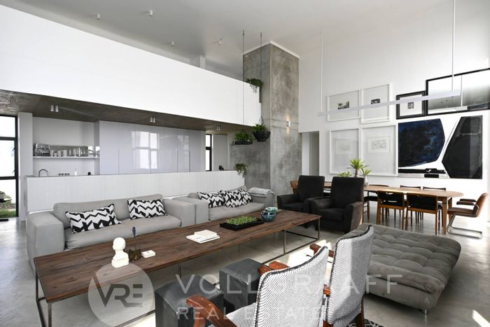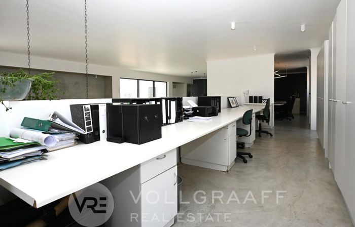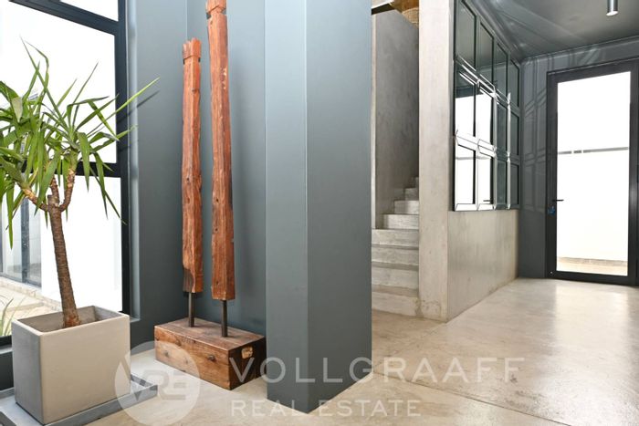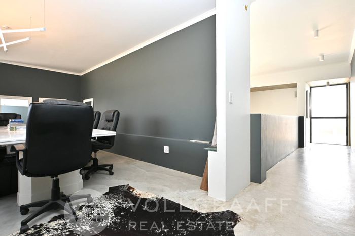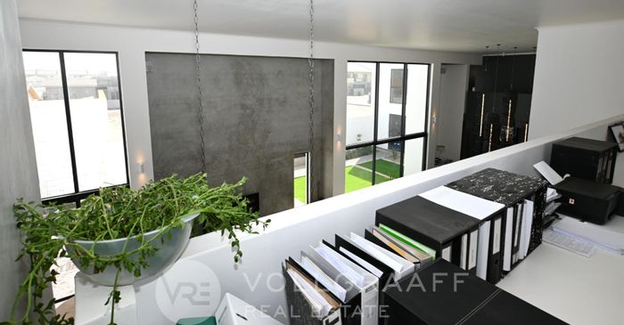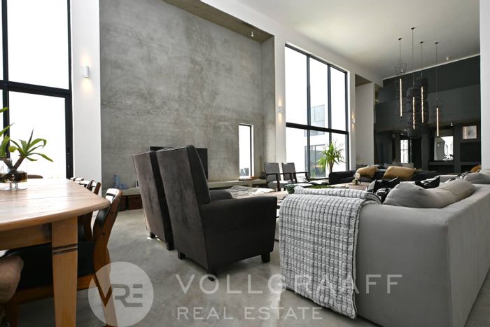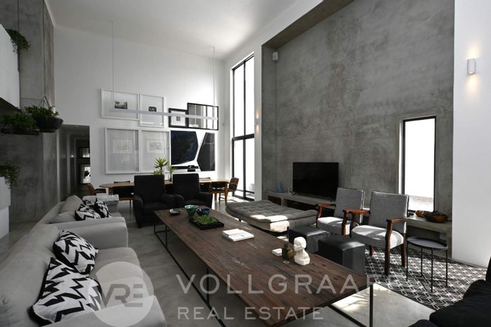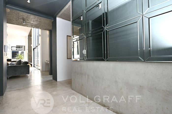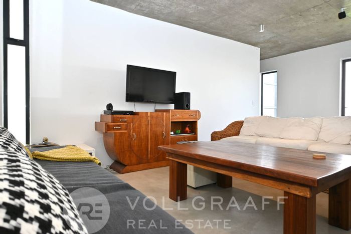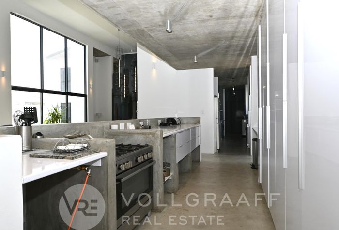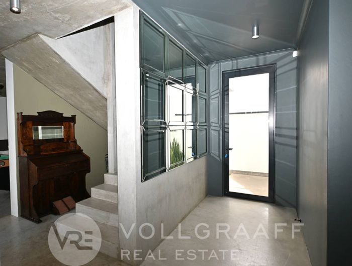 Concrete industrial home with open living space, private bathrooms, study, and entertainment area in a convenient neighborhood.