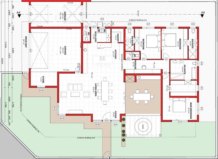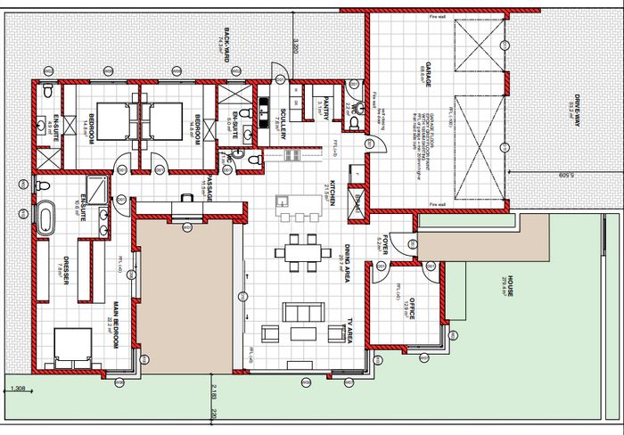 Three bedrooms, three bathrooms, 308.8 m² floor size, 600 m² land size, and three garages.