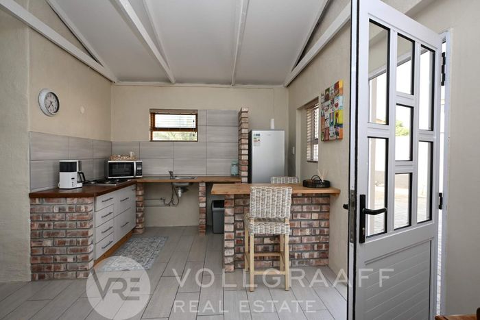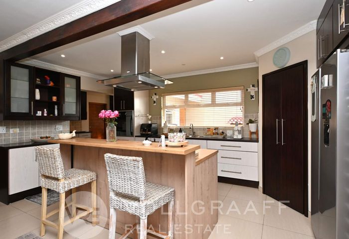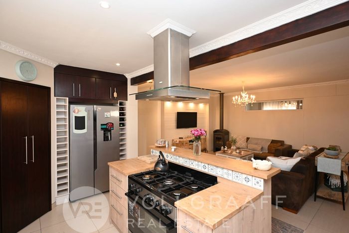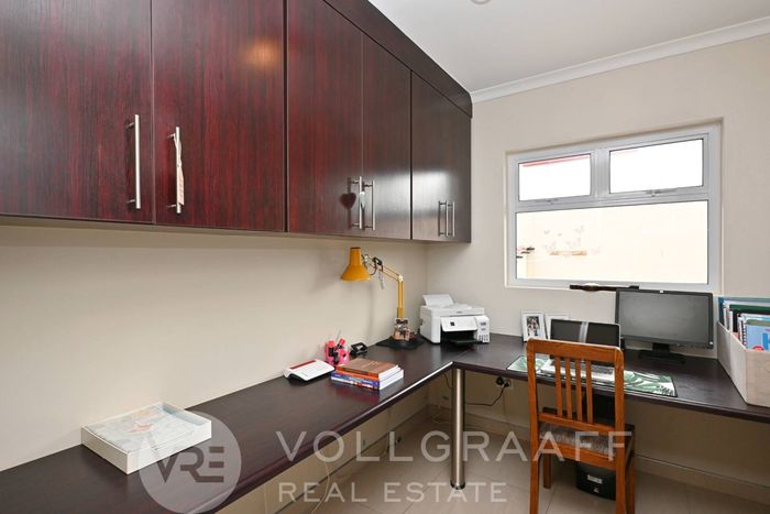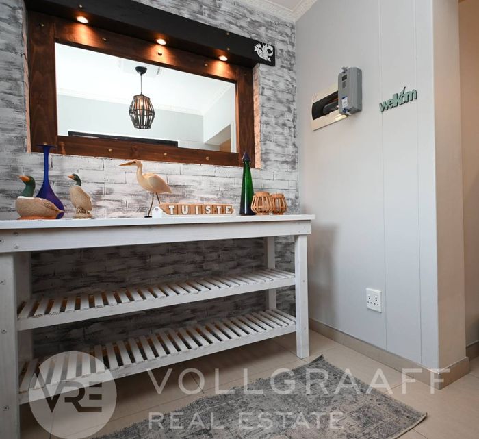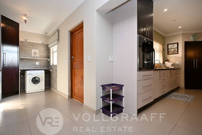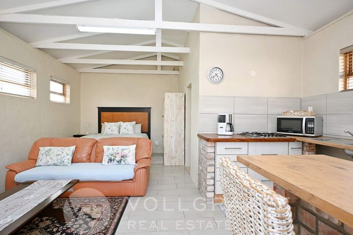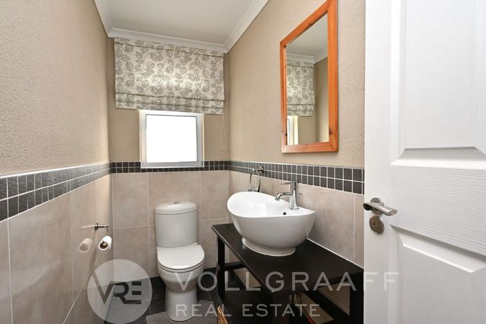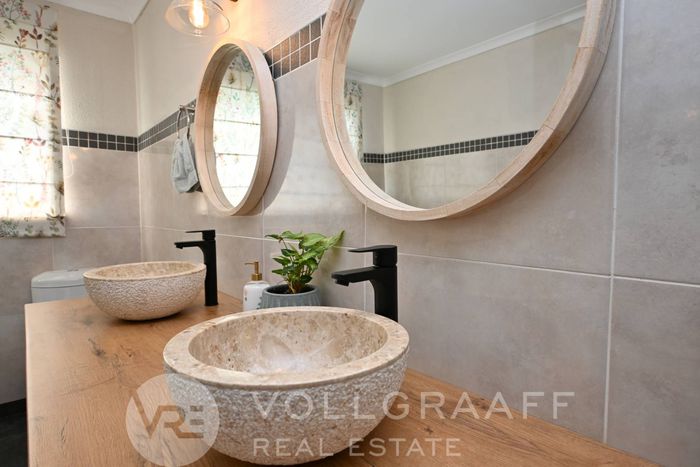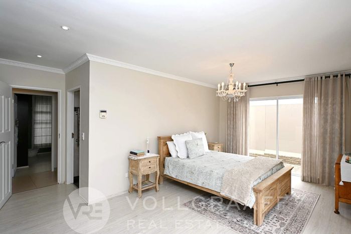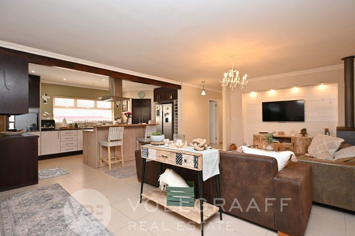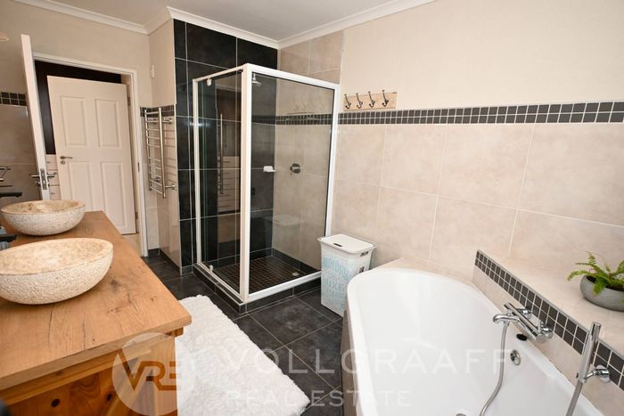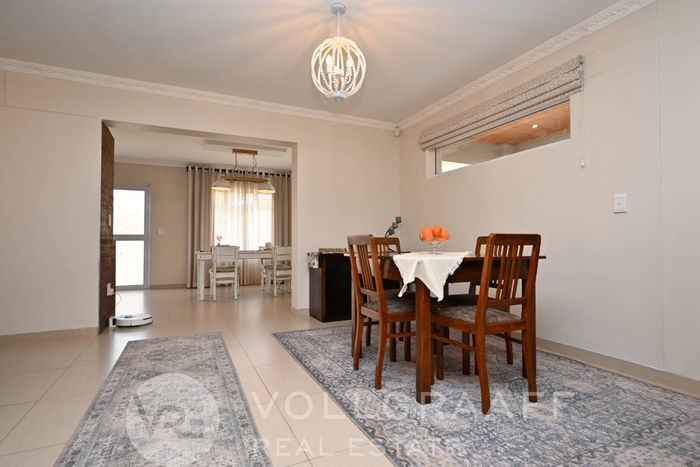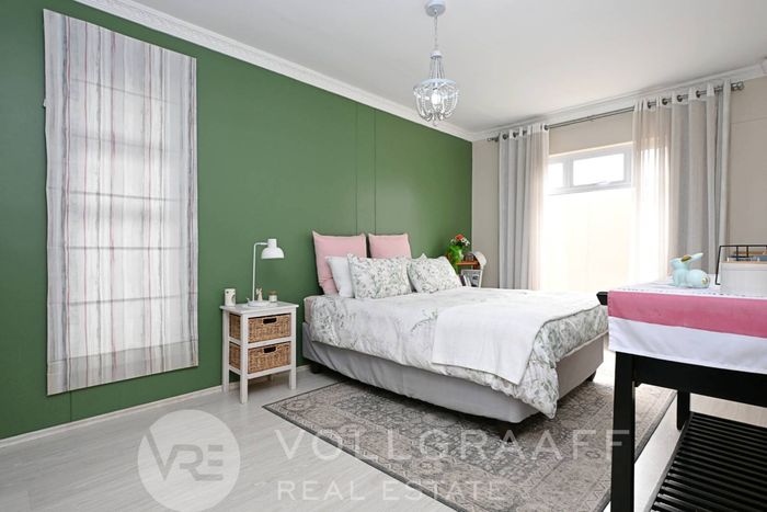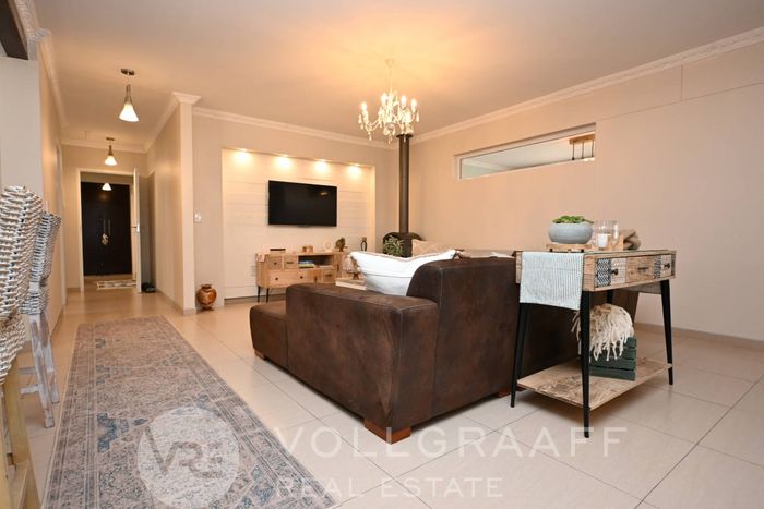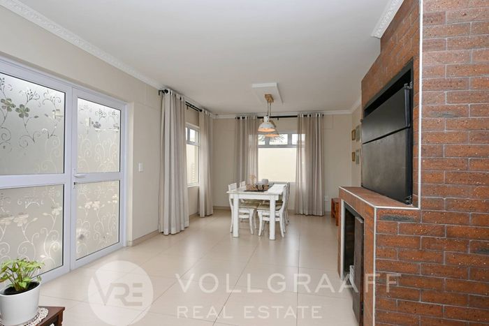 Private corner erf in a peaceful neighbourhood with generous indoor–outdoor flow and entertaining ease — built-in braai, boma and self-contained flat. Three bedrooms, two bathrooms, double garage.