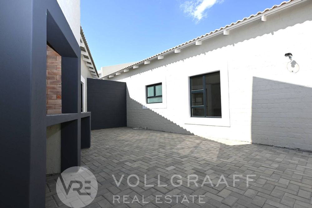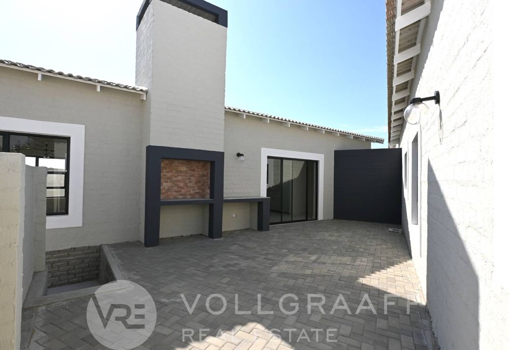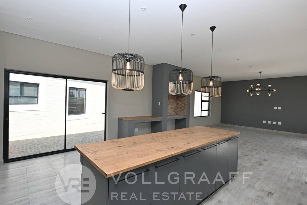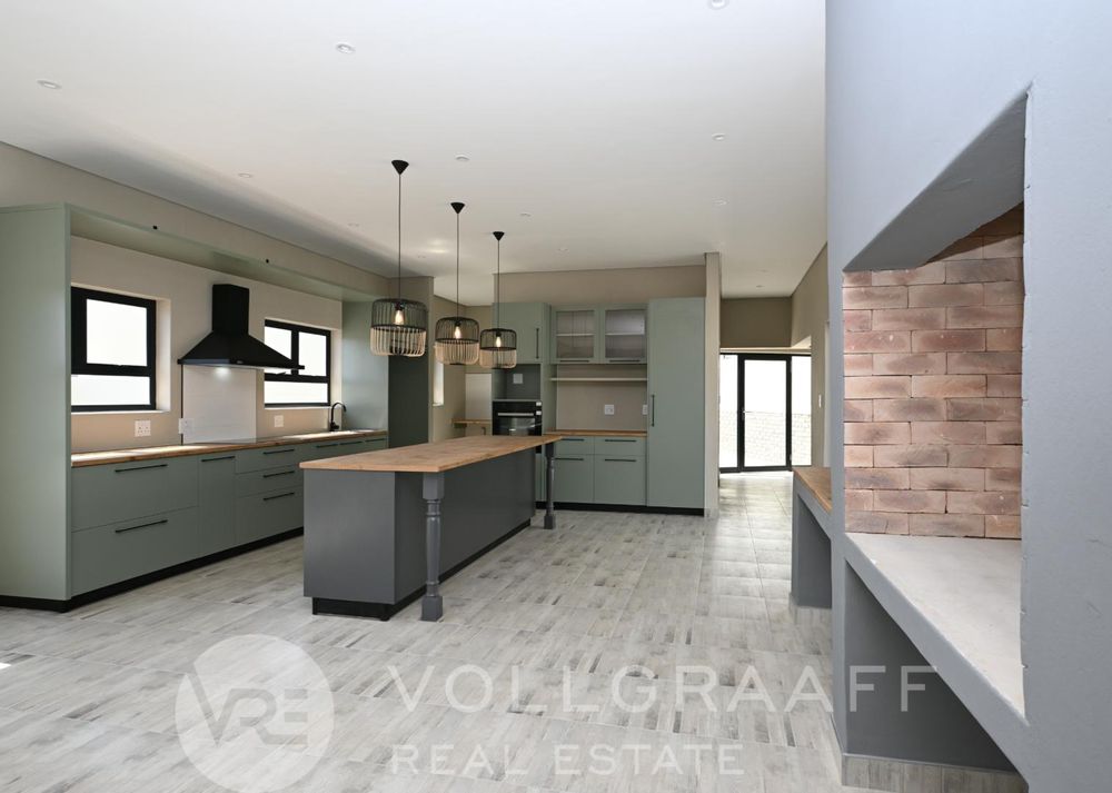 The living area is spacious and inviting, complete with an indoor braai for delightful gatherings. The beautiful central island steals the spotlight, adorned with hanging lights and exquisite fittings and cupboards. A prep bowl is included for easy rinsing, while a separate scullery ensures that your dishes remain hidden while entertaining your envy-inducing friends and family in your gorgeous new home.