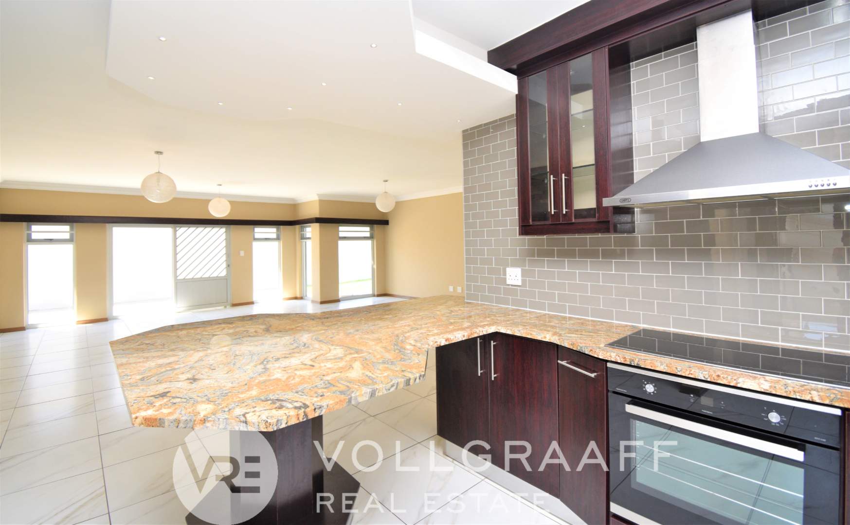 The kitchen is complemented by high end finishes, and scullery, ensuring ample space for meal preparation and storage.