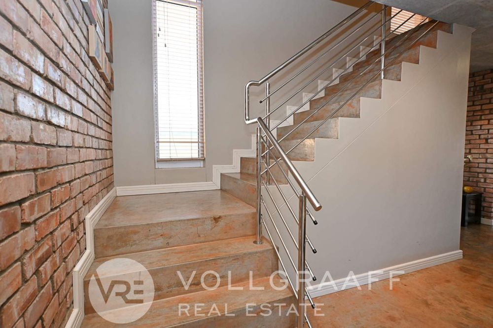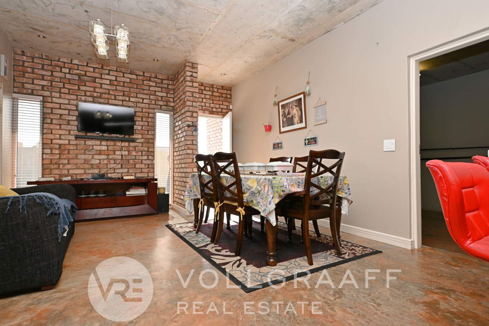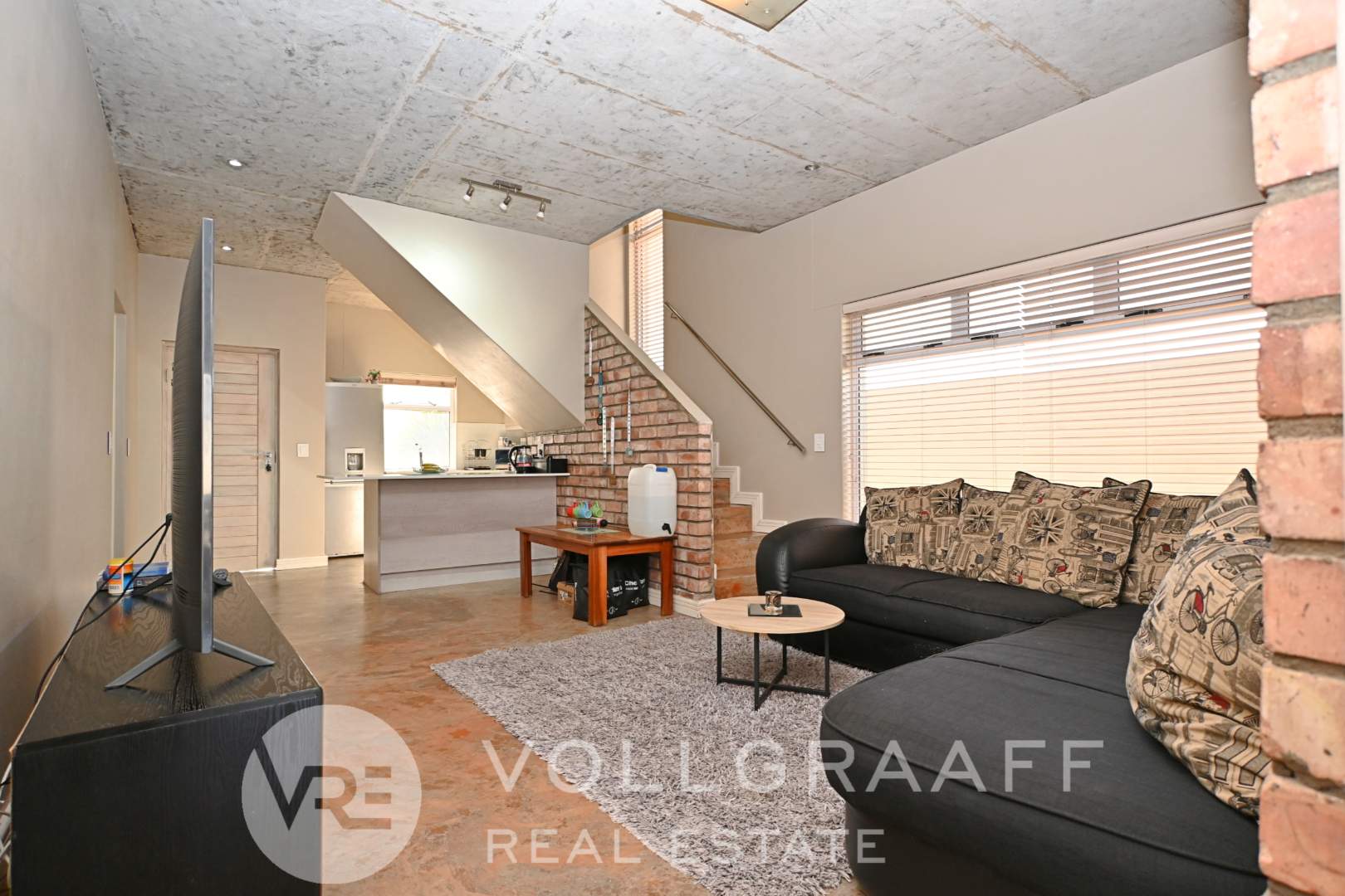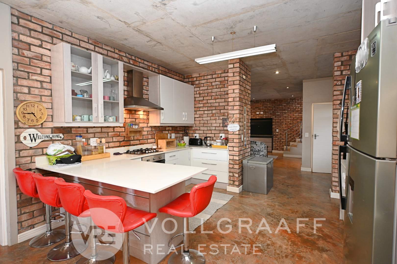 This beautifully designed modern double-storey property, featuring sleek polished cement floors and contemporary finishes throughout, is looking for its new owner.