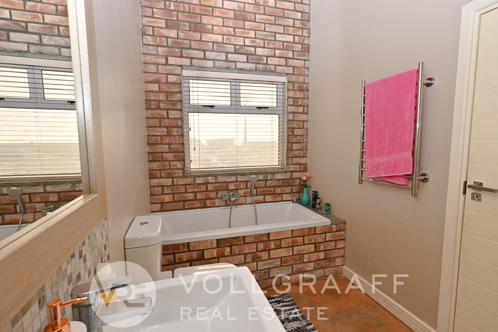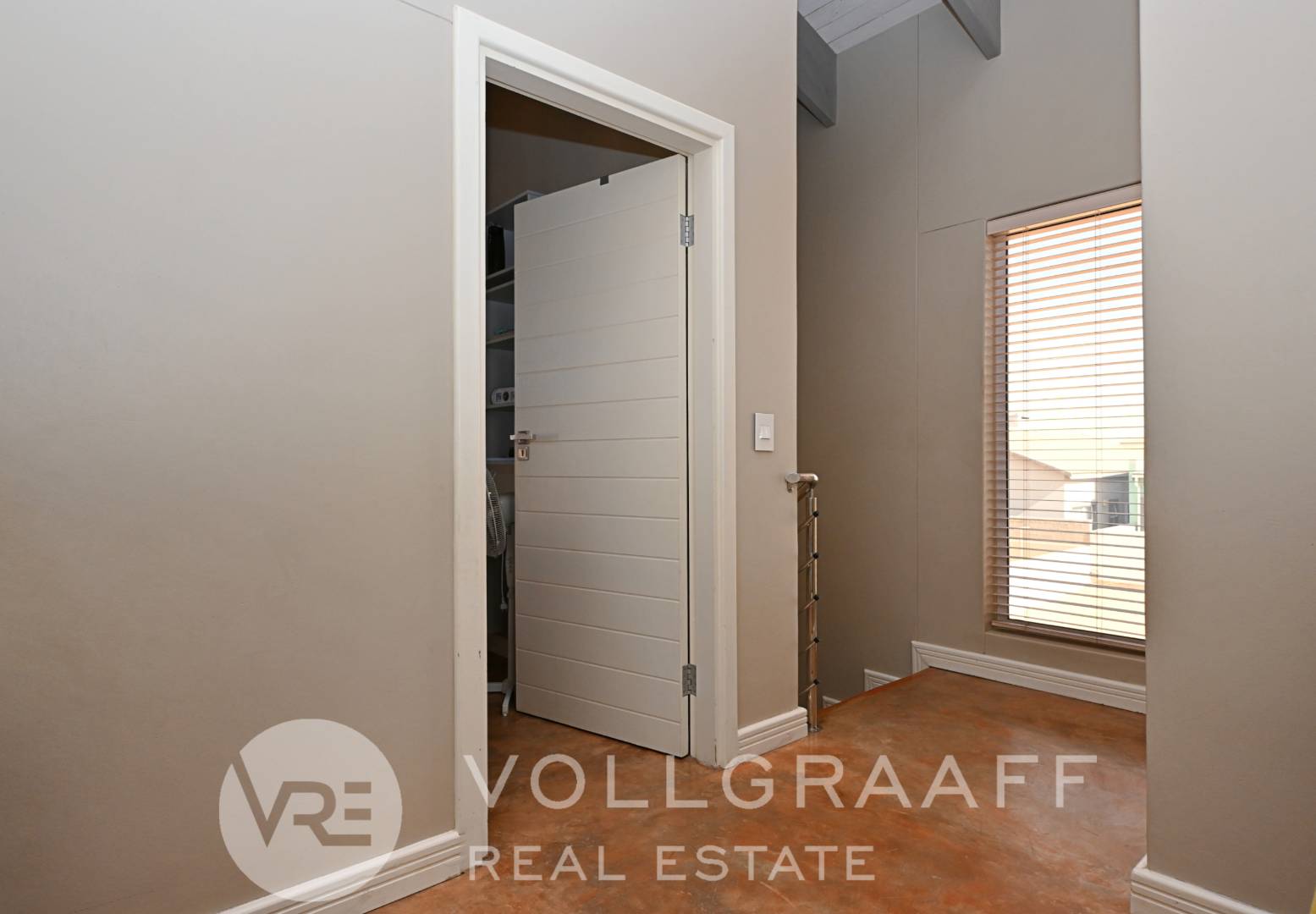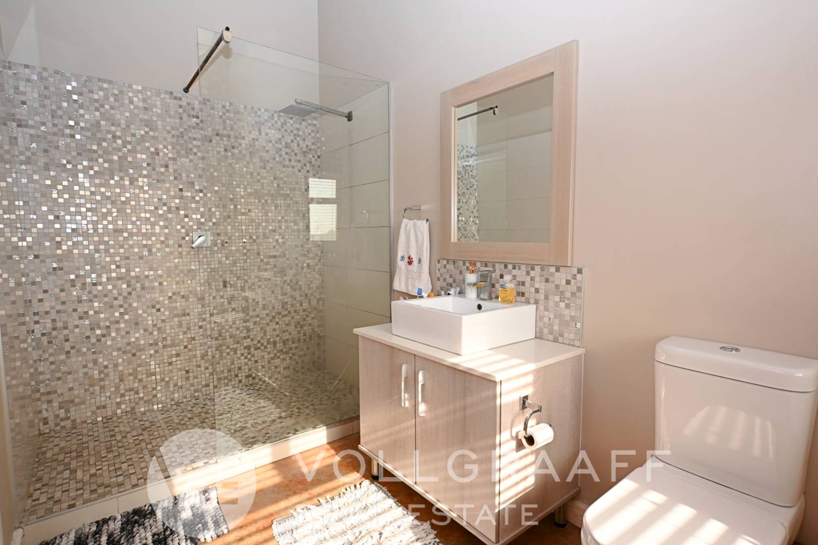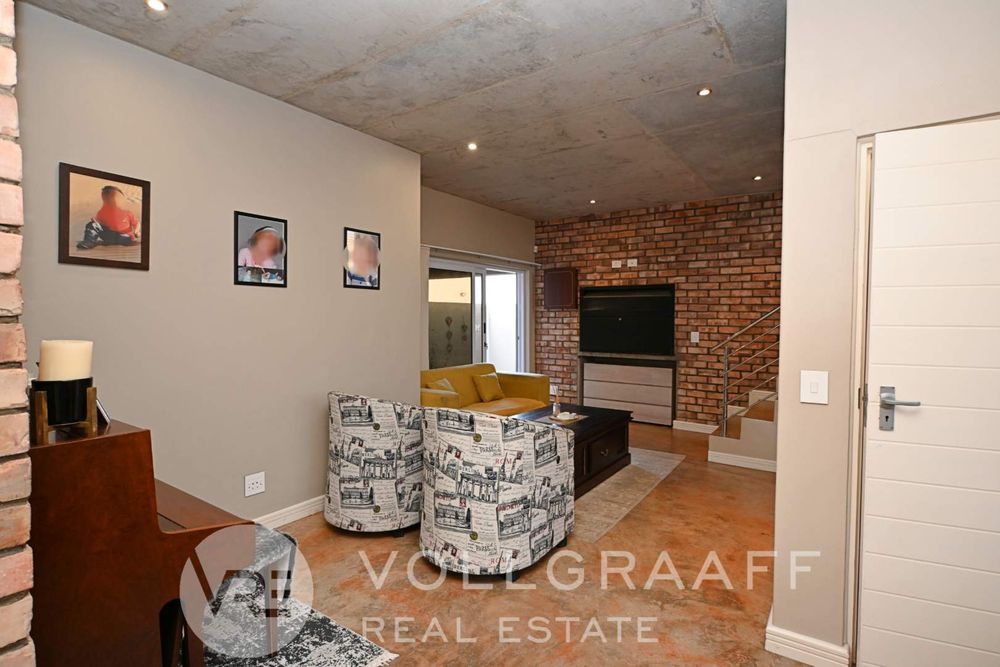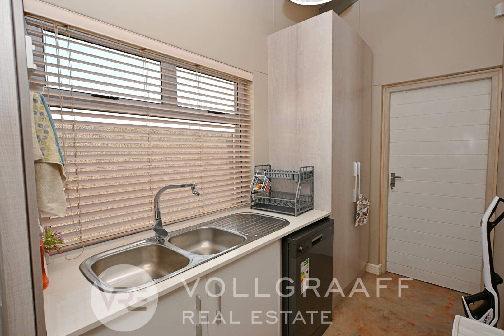 This beautifully designed modern double-storey property, featuring sleek polished cement floors and contemporary finishes throughout, is looking for its new owner.