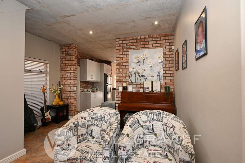 -A cozy lounge leading to a larger entertainment area with an indoor braai