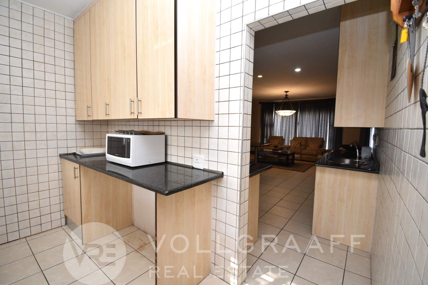 Outside is an established garden with interlocks. Corner erf measuring 1 020 m2 with house of about 400m2. What more do you need? Walking distance to Ocean View Spar. Lovely locality. We can talk about the furniture should you wish to take that over. Secure with alarm and electric fencing. Two entrances to the property apart from garages for extra parking.