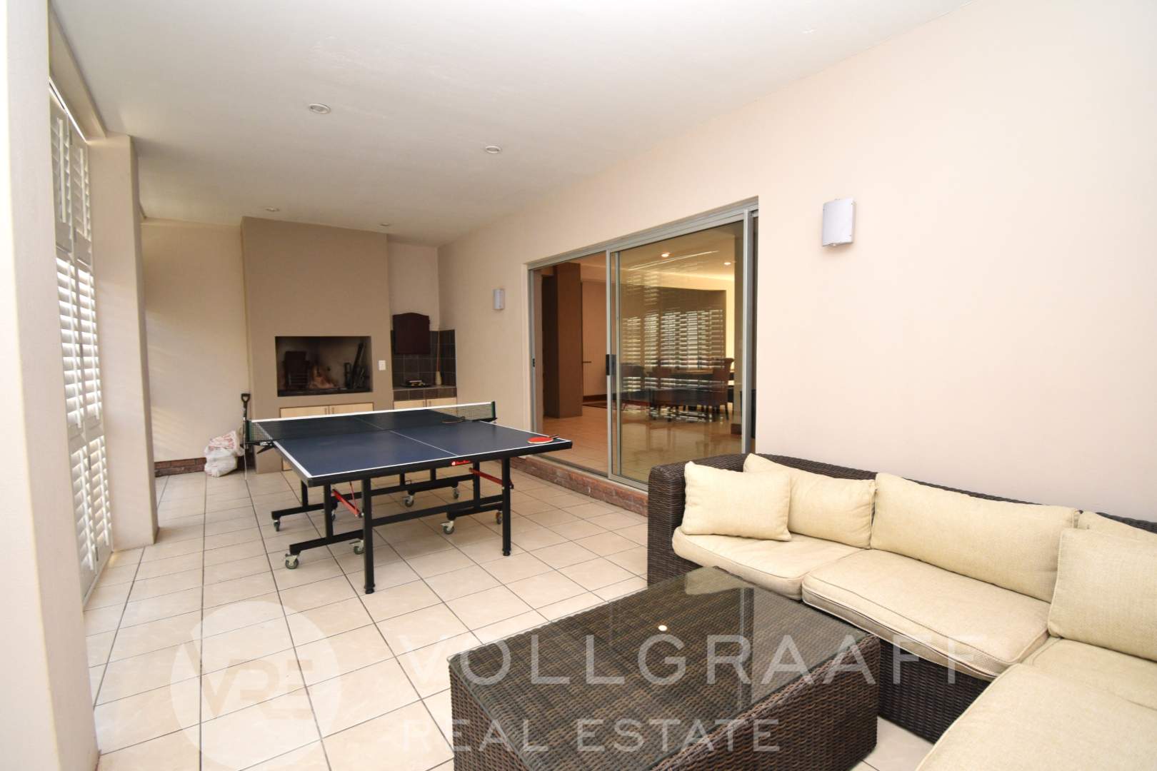 Ground floor offers a bedroom plus en-suite bathroom. Large dining room and lounge. Large indoor entertainment area with own BBQ. Kitchen and separate scullery. Guest toilet. 3 Garages with ample storage room. Laundry room.