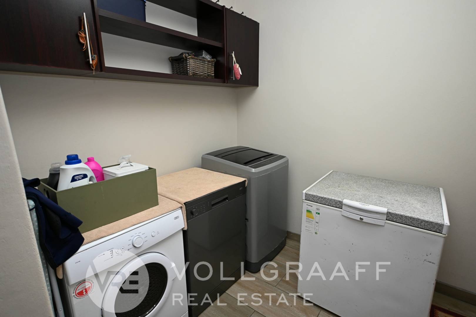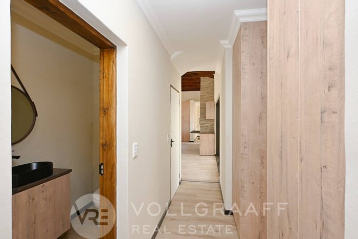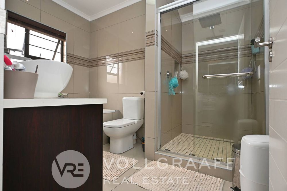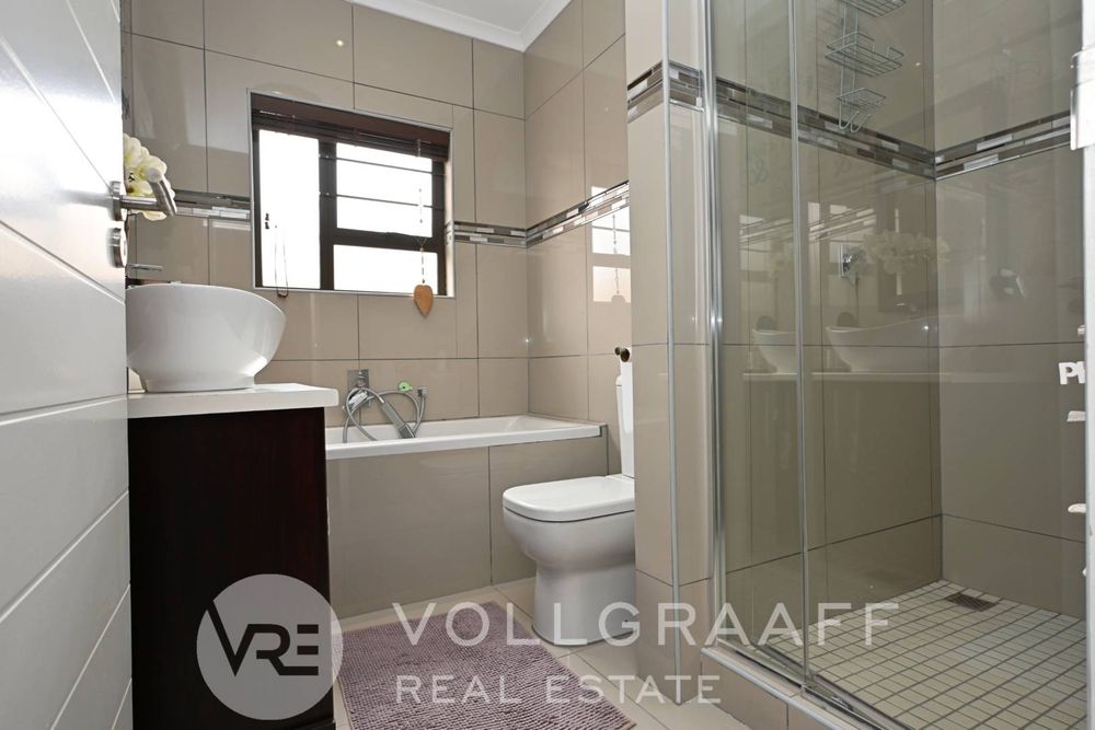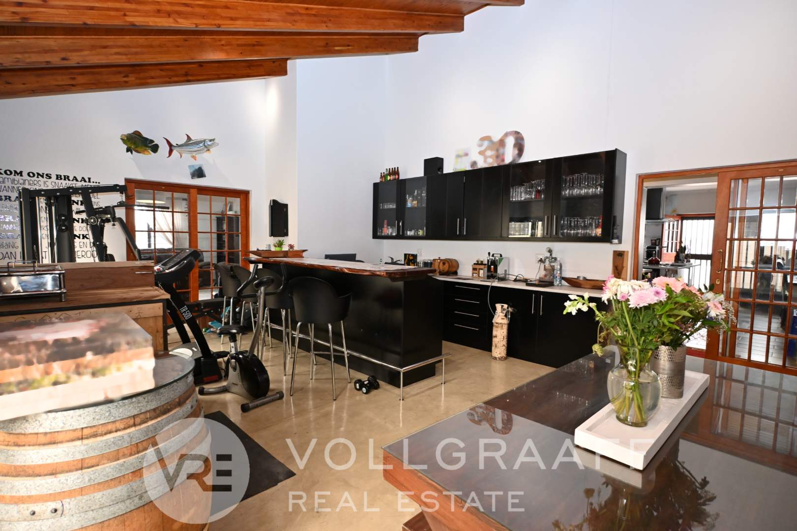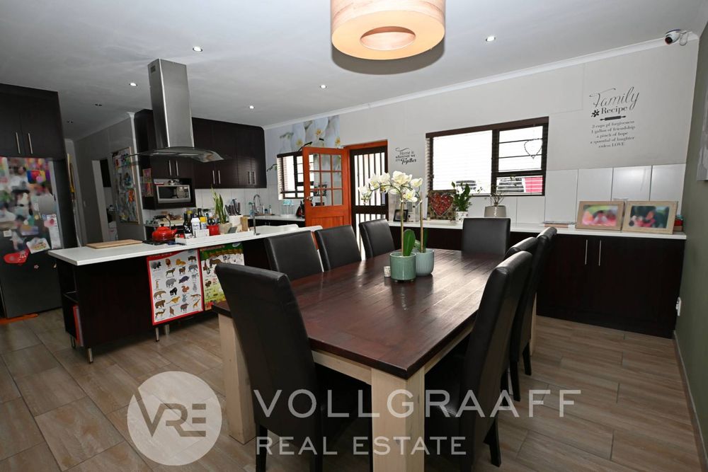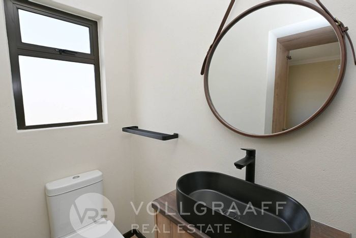 The main living area is bright and welcoming, ideal for creating lasting memories with loved ones. Just off this space, you'll find a dedicated entertainment area featuring a built-in braai — perfect for year-round hosting, no matter the weather. A conveniently located guest toilet ensures added comfort for visitors.