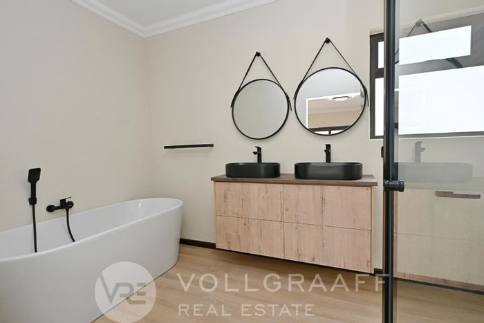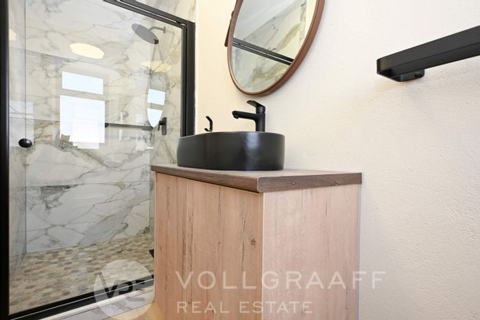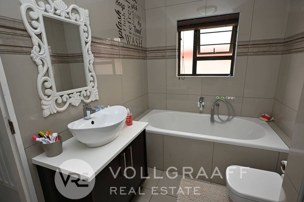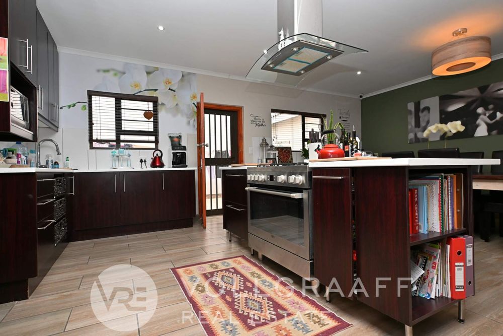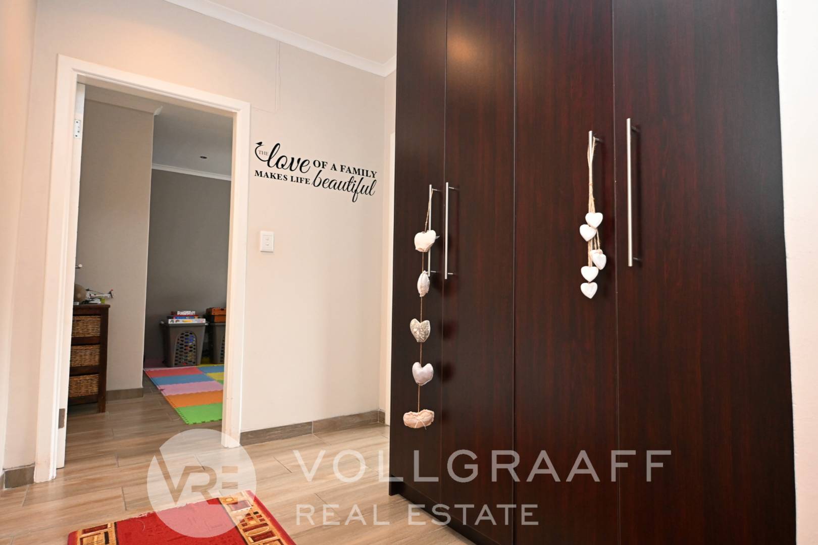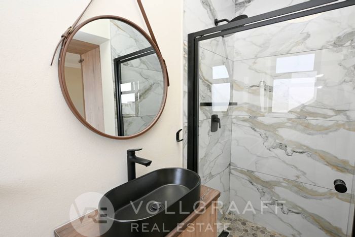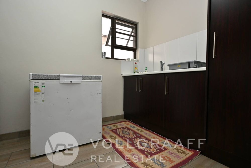The main living area is bright and welcoming, ideal for creating lasting memories with loved ones. Just off this space, you'll find a dedicated entertainment area featuring a built-in braai — perfect for year-round hosting, no matter the weather. A conveniently located guest toilet ensures added comfort for visitors.