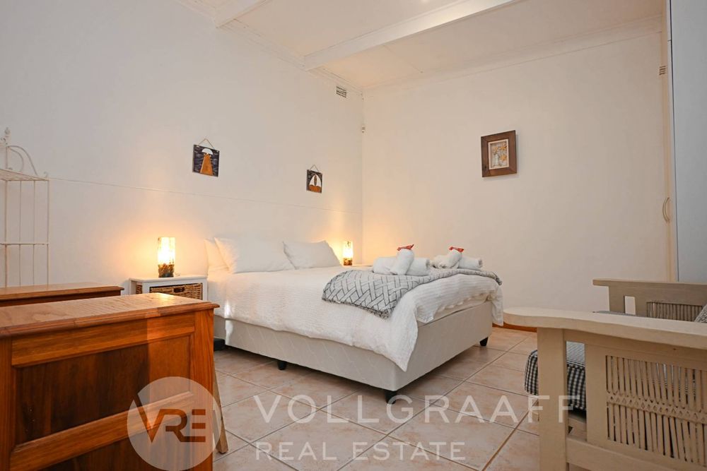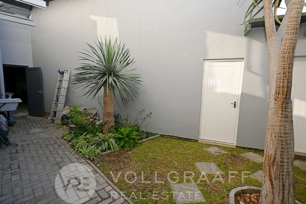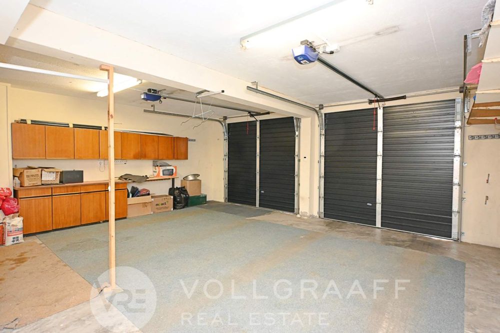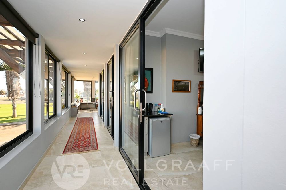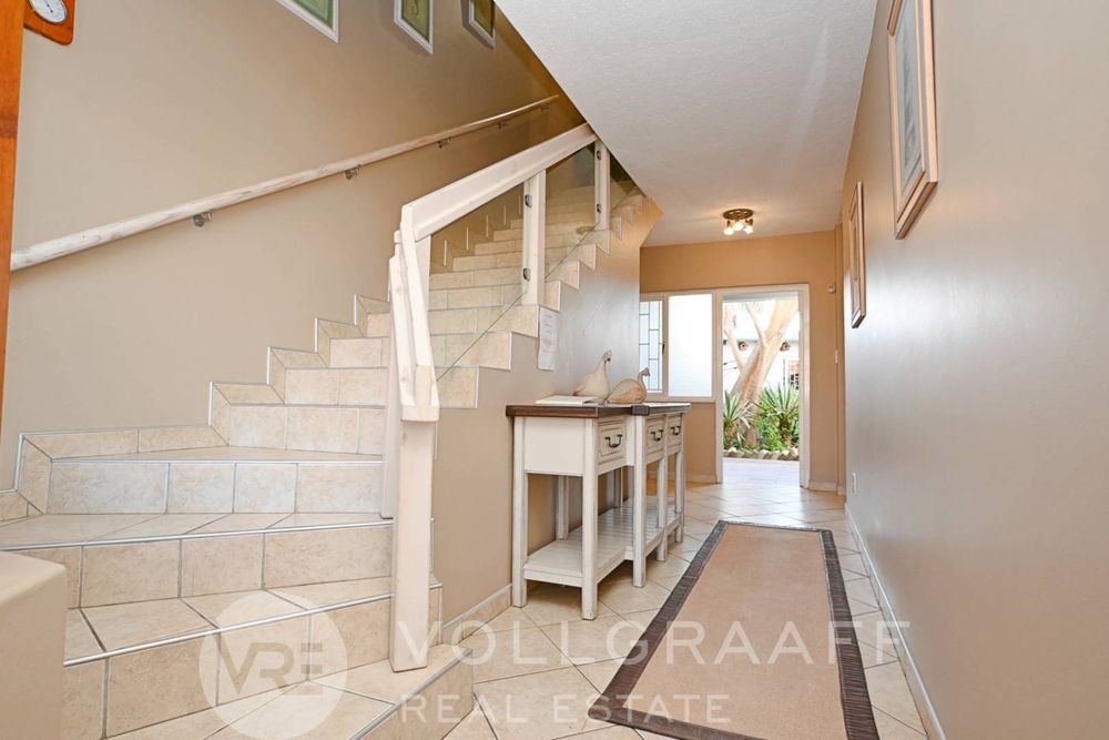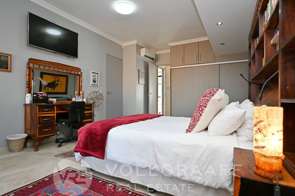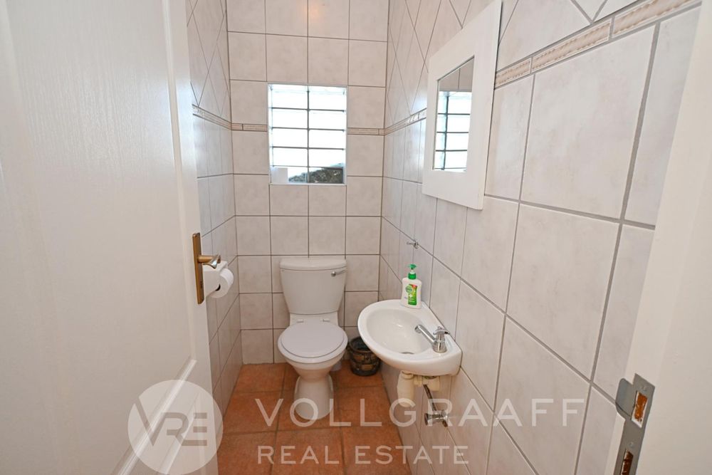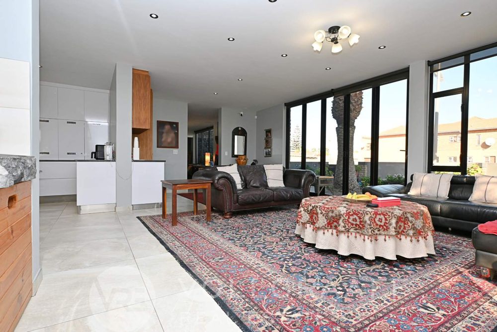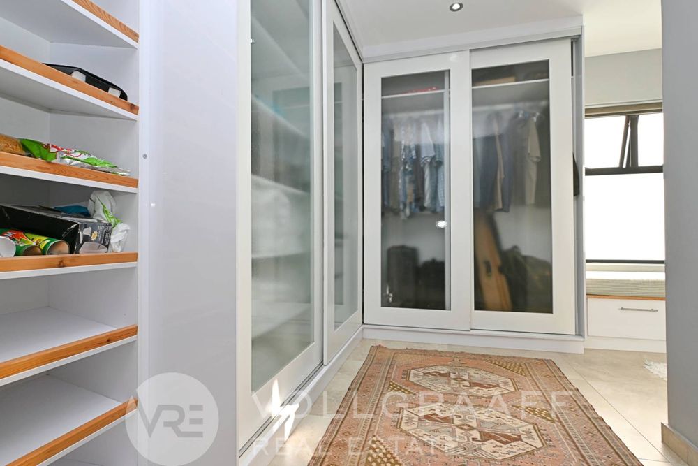 The main house boasts two expansive living areas, perfect for entertaining and relaxation. A modern, state-of-the-art kitchen equipped with high-end appliances, soft-close cupboards with integrated LED lighting, and a convenient scullery. There is also a convenient guest loo located downstairs.