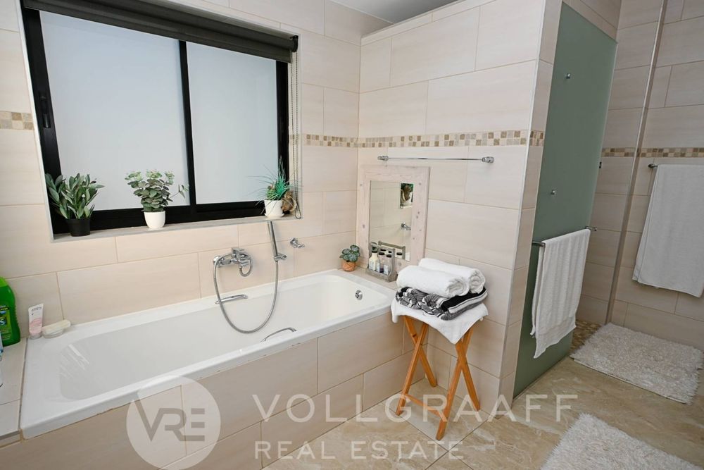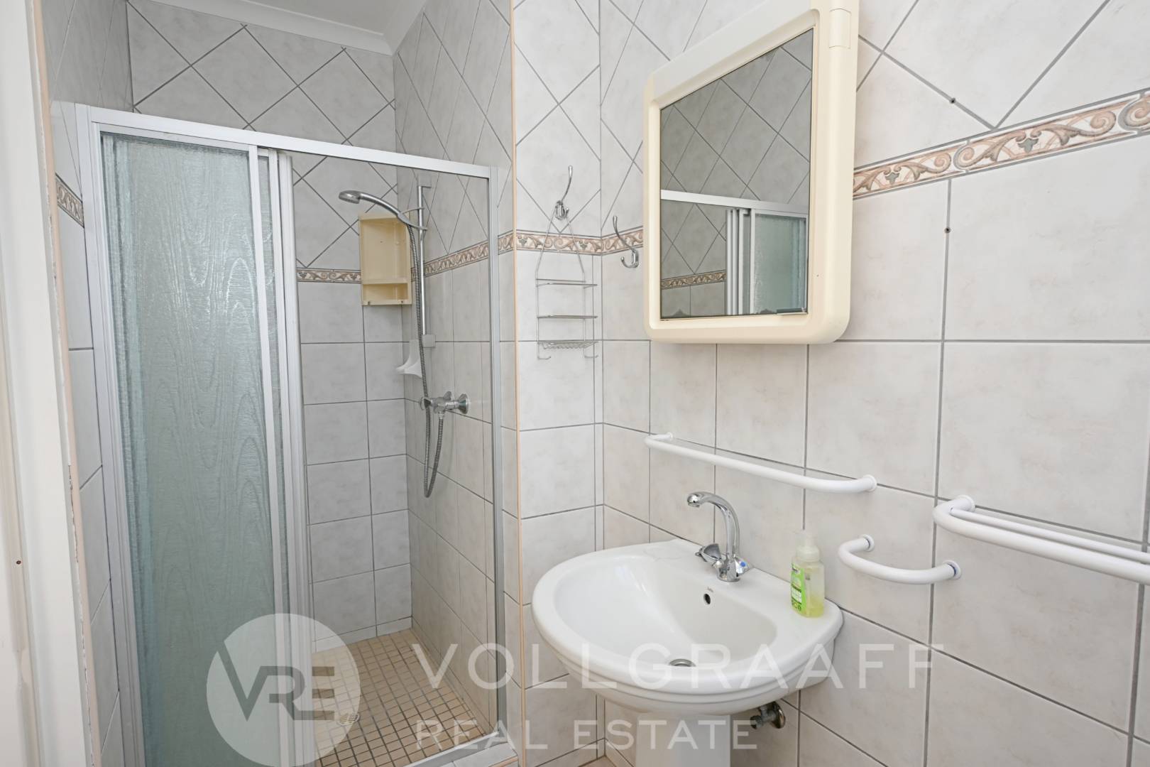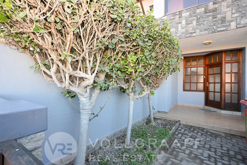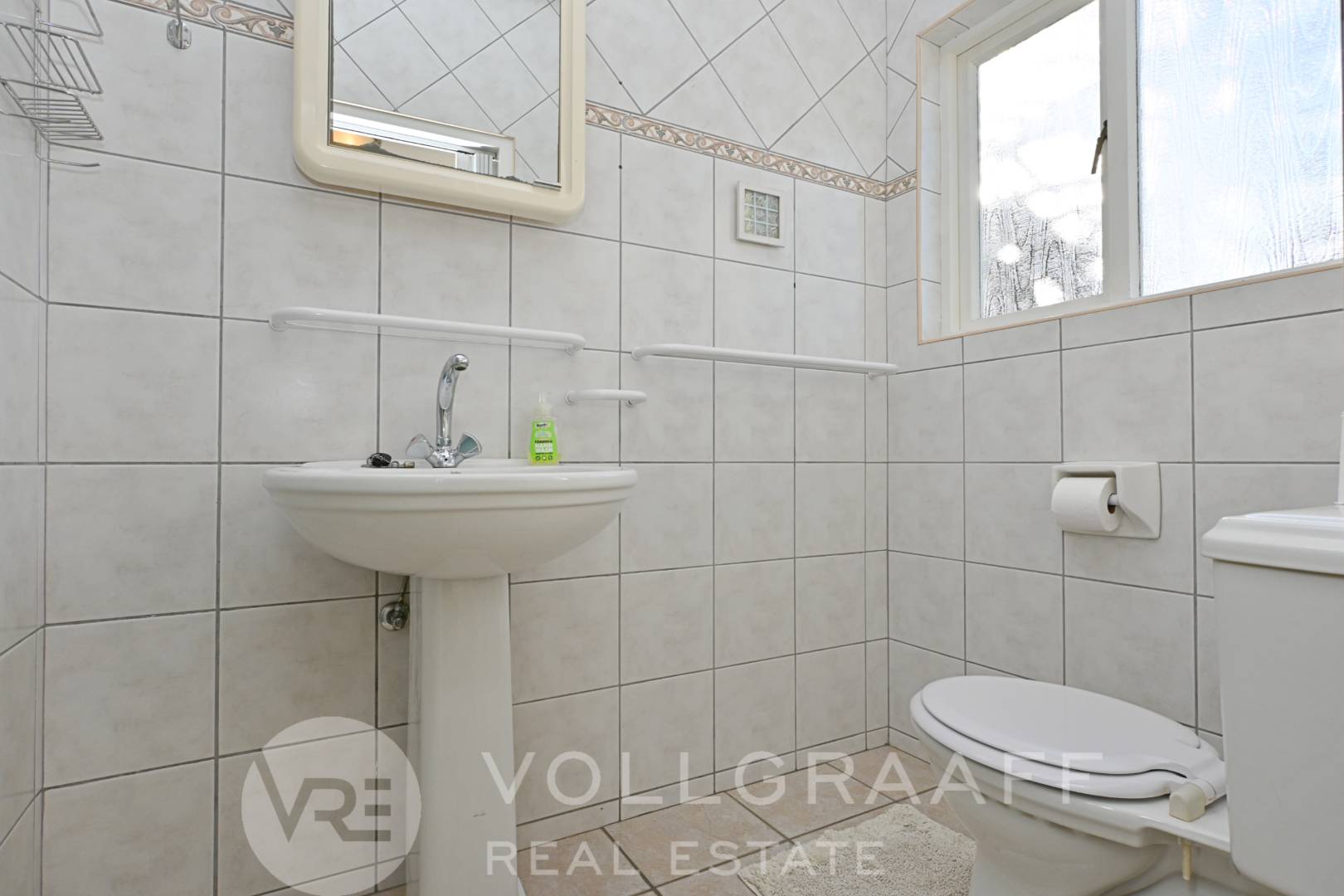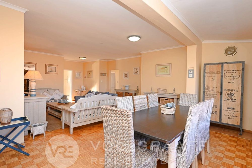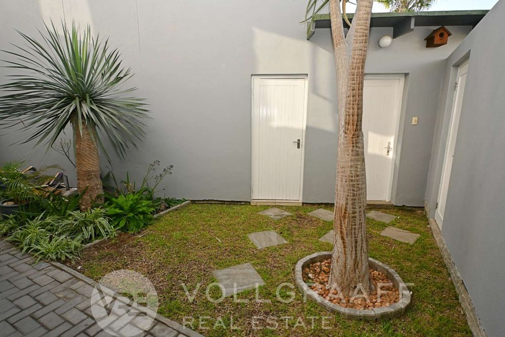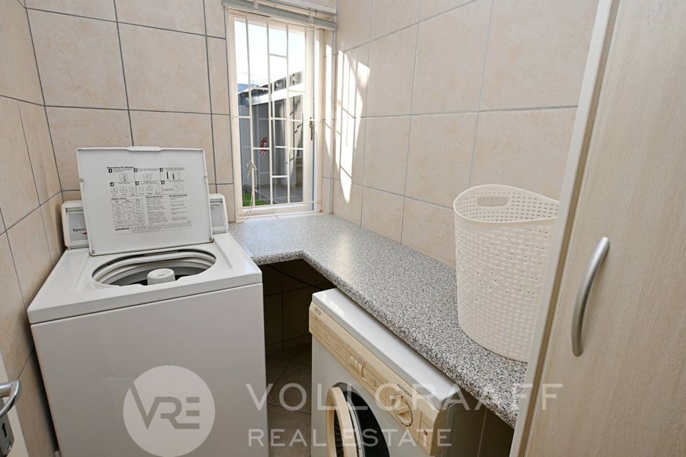 The main house boasts two expansive living areas, perfect for entertaining and relaxation. A modern, state-of-the-art kitchen equipped with high-end appliances, soft-close cupboards with integrated LED lighting, and a convenient scullery. There is also a convenient guest loo located downstairs.
