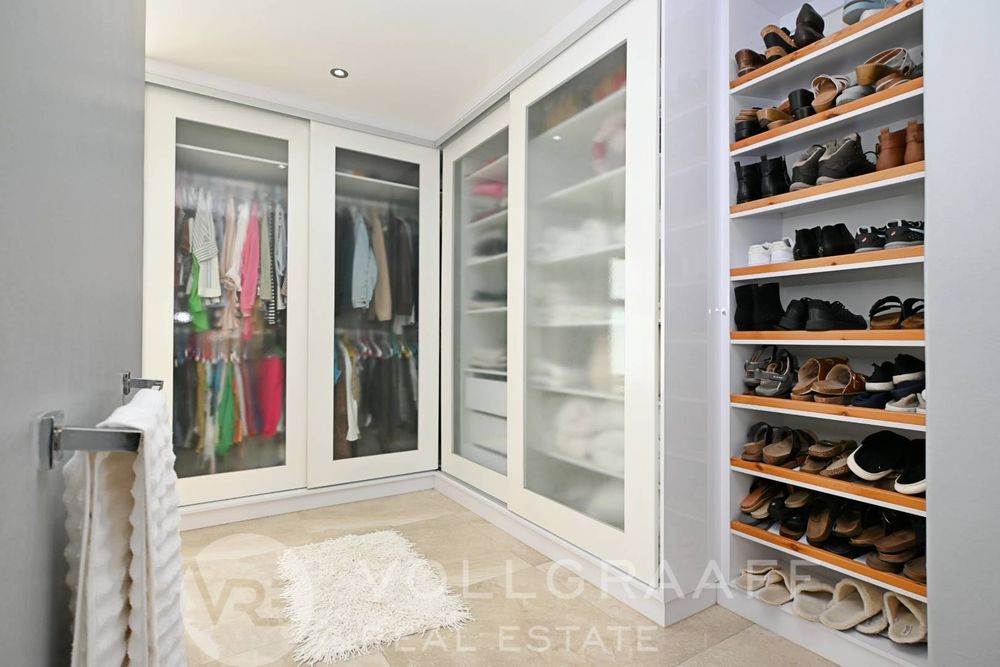 The master bedroom includes a built-in security safe room, a walk-in closet with his and hers sections, and a spacious en-suite bathroom.