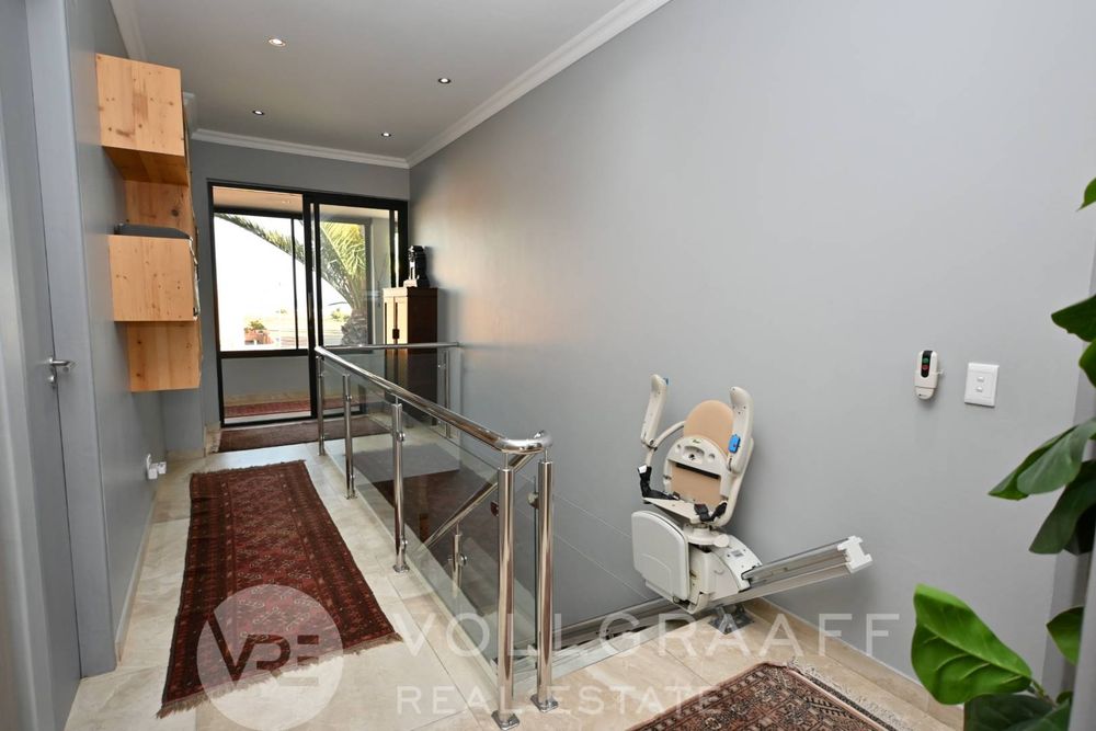 An electric chair lift provides easy access to the upper level where the bedrooms and the study is.