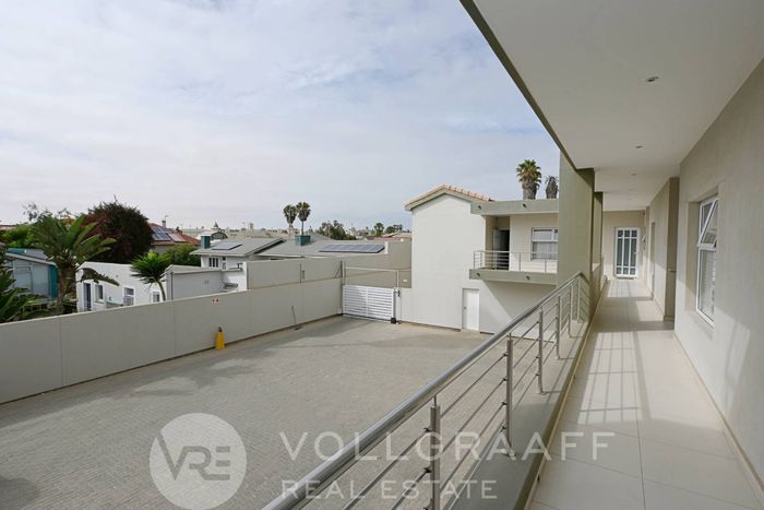 3-bedroom, 2-bathroom first-floor apartment in Swakopmund, 196 m² with 2 garages and slight sea view balcony.