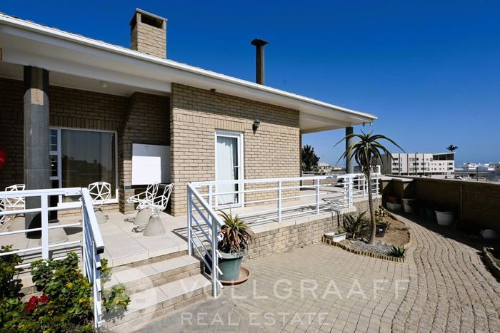 Oceanfront living with uninterrupted sea views and sunset vistas, expansive erf for a future granny flat, entertainment patio with built-in BBQ, two garages — five bedrooms, 3.5 bathrooms.