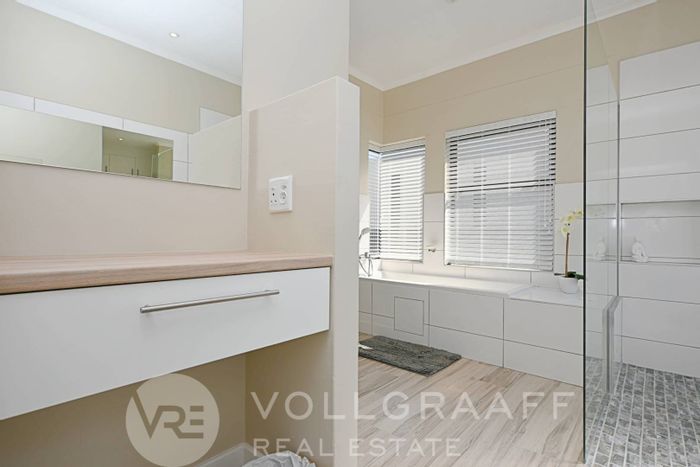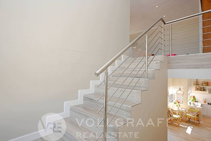 Entertain effortlessly in a secure, leafy neighborhood with lush low-maintenance gardens and three private self-catering flatlets (Airbnb registered) — six bedrooms, five bathrooms, five garages.