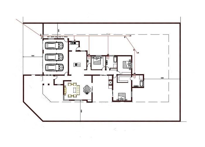 Four-bedroom, three-bathroom home on 1,450 m² with a triple garage and 313 m² floor size.