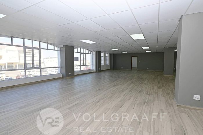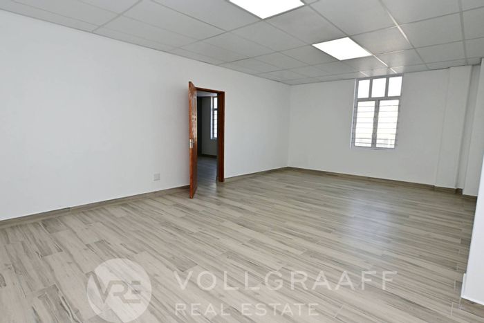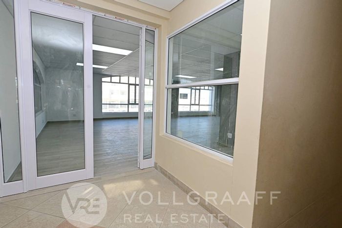 First-floor business space for rent in Swakopmund: 246m², private office, storage room, restroom. N$ 29,520 p/m.