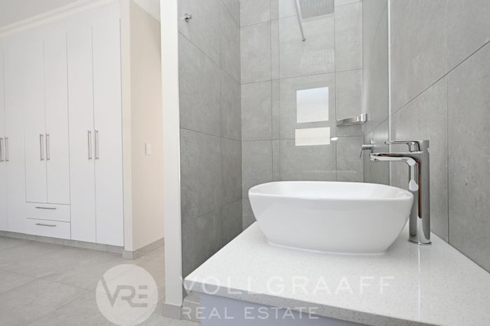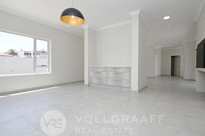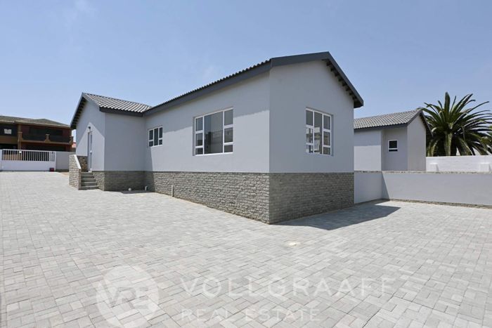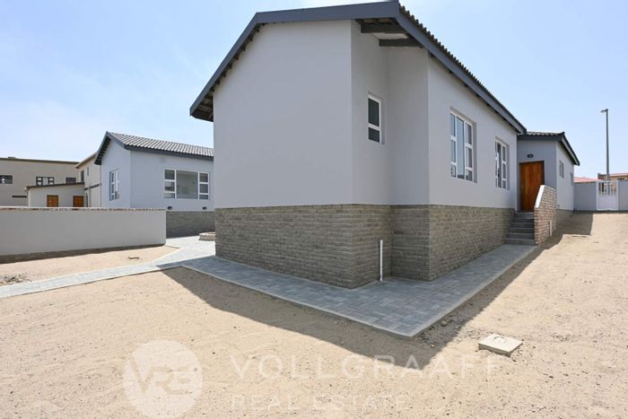 Relaxed coastal living in Swakopmund's newest development with open-plan interiors, private garden and built-in braai for entertaining; three bedrooms, two bathrooms and double garage.