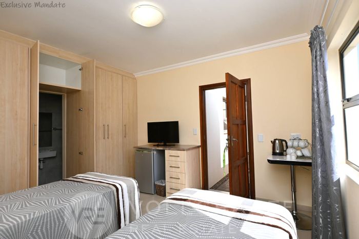 Entertain effortlessly in a secure, leafy neighborhood with lush low-maintenance gardens and three private self-catering flatlets (Airbnb registered) — six bedrooms, five bathrooms, five garages.