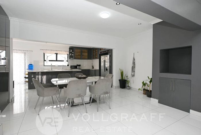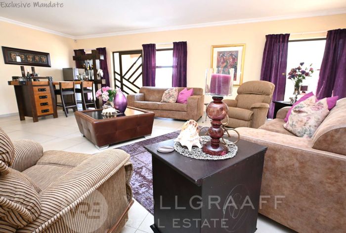 Entertain effortlessly in a secure, leafy neighbourhood with a covered braai patio and sunken firepit, designer kitchen, and five bedrooms, five bathrooms, plus triple garage.