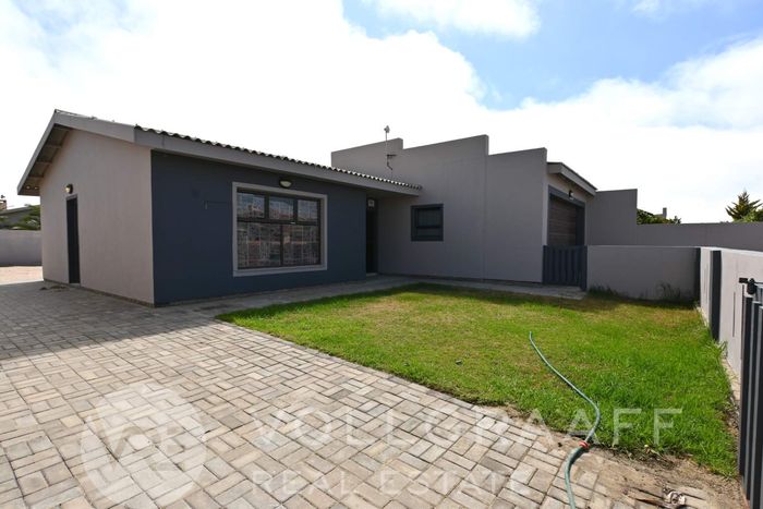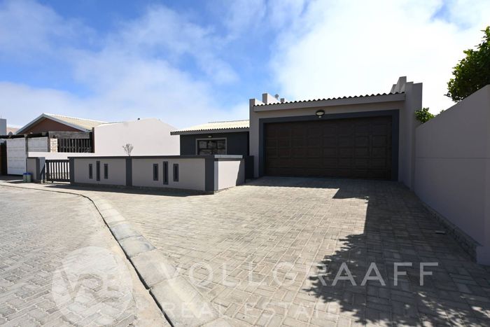 Every day feels like a vacation with ocean breezes in Swakopmund — expansive balcony and private master balcony, mature garden, bonus ground-floor spa; five bedrooms, three bathrooms, triple garage.