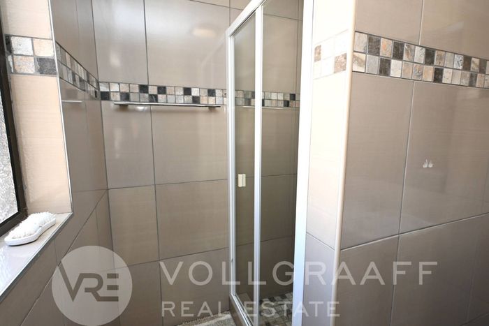Private corner erf in a peaceful neighbourhood with generous indoor–outdoor flow and entertaining ease — built-in braai, boma and self-contained flat. Three bedrooms, two bathrooms, double garage.