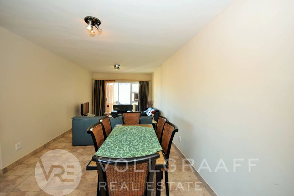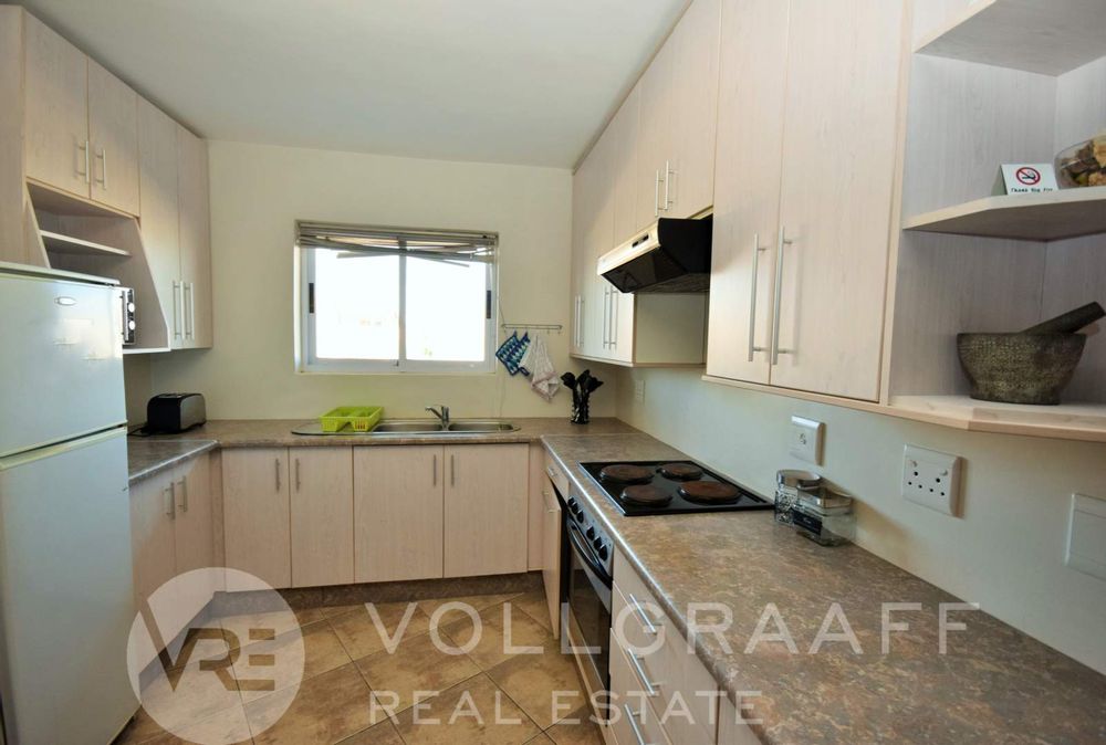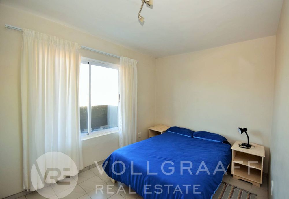 2-bedroom, 2-bathroom apartment located in Mile 4, just a short walk from the beach. The apartment offers an open-plan kitchen and living area with access to an enclosed balcony featuring a built-in braai. The main bedroom also opens onto the balcony.
