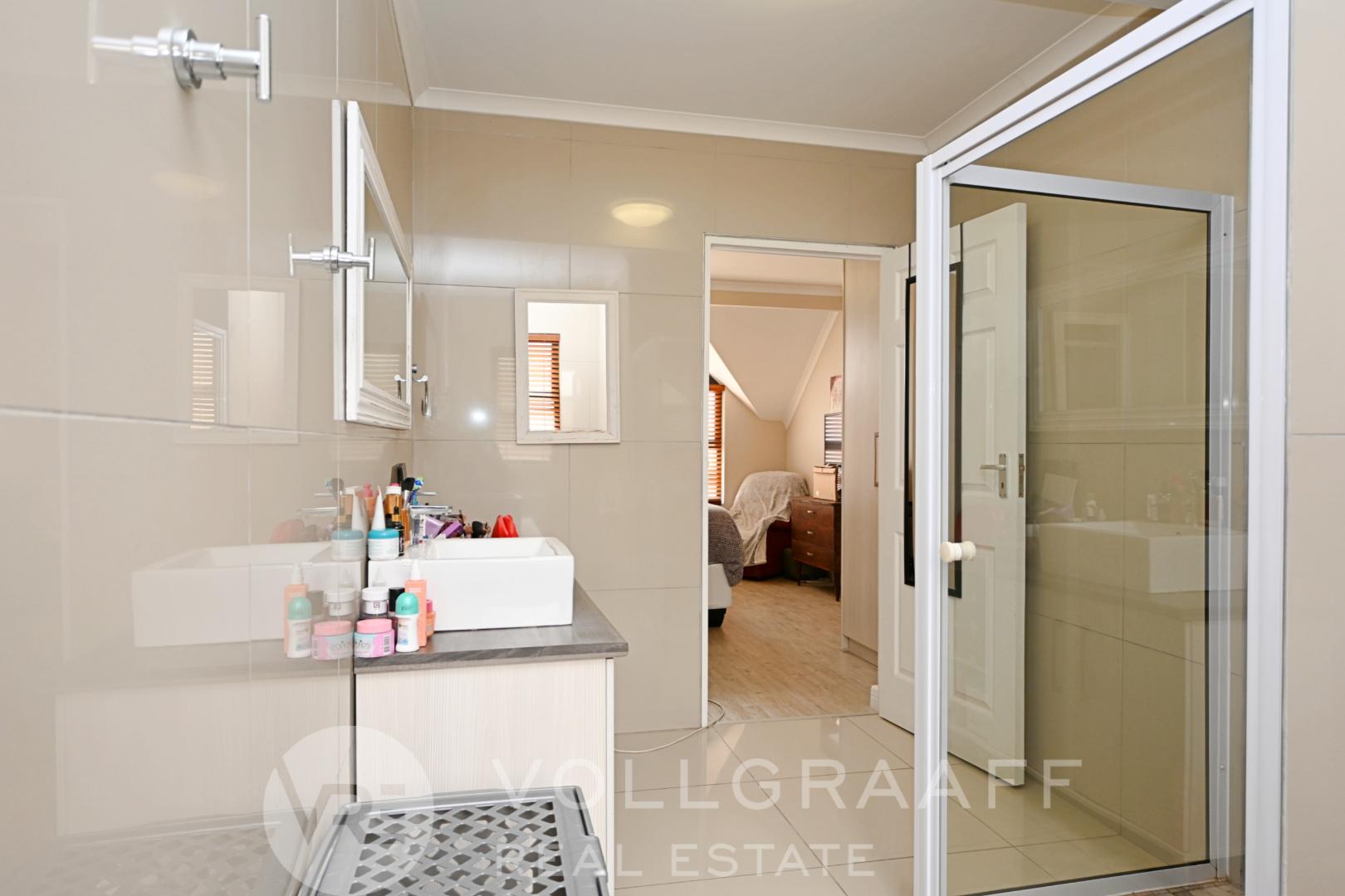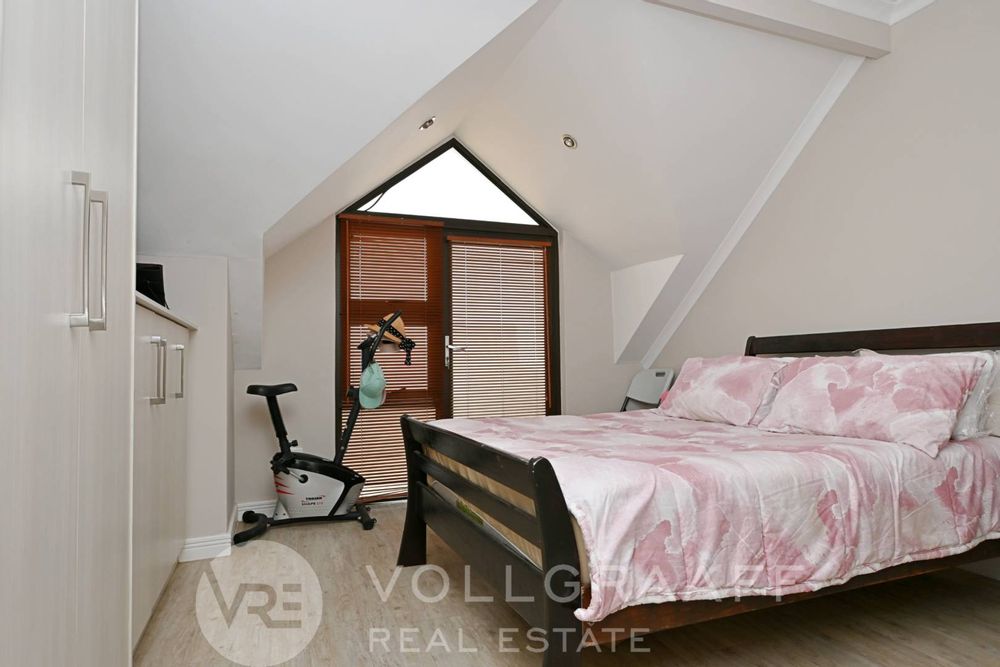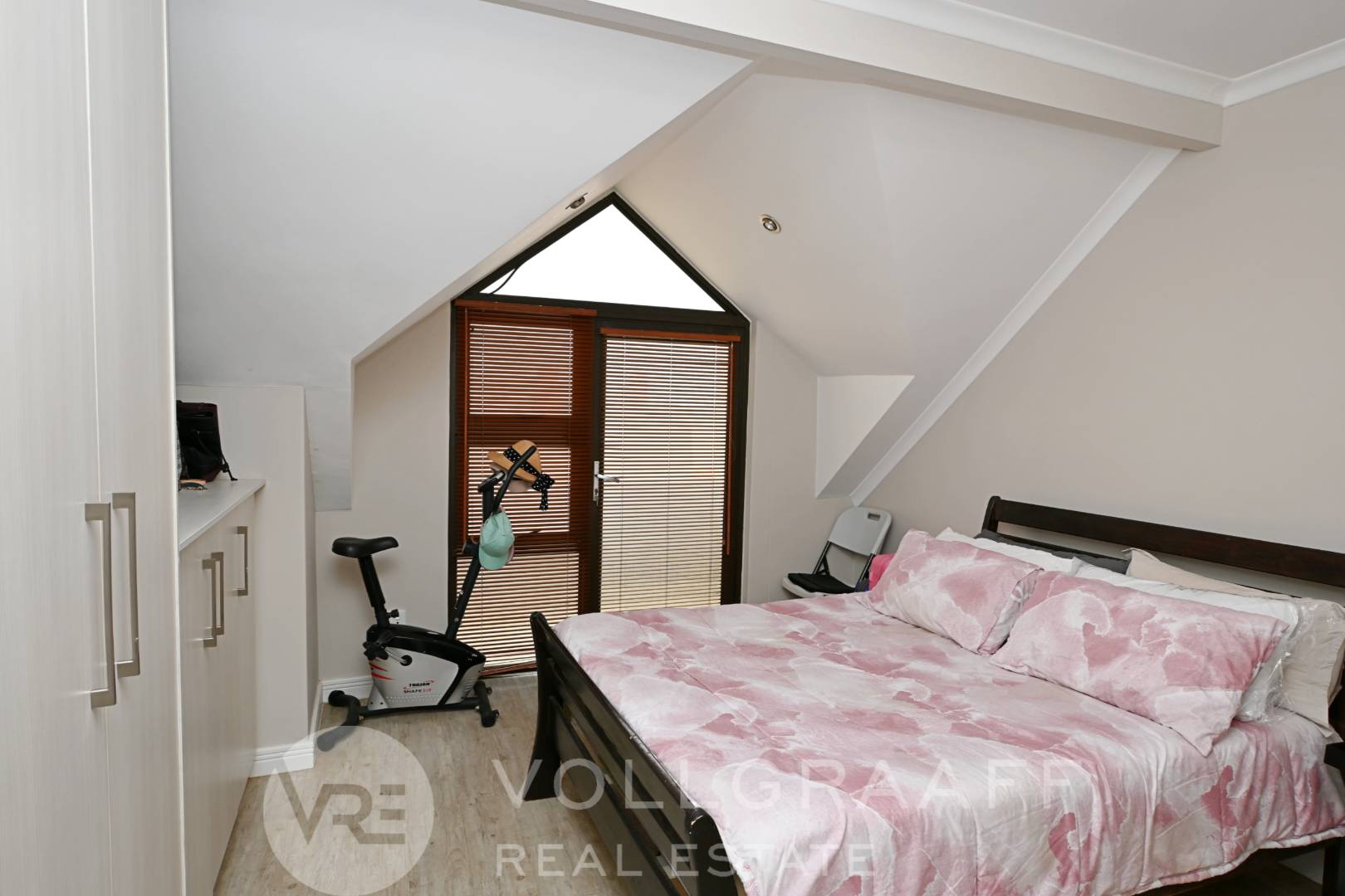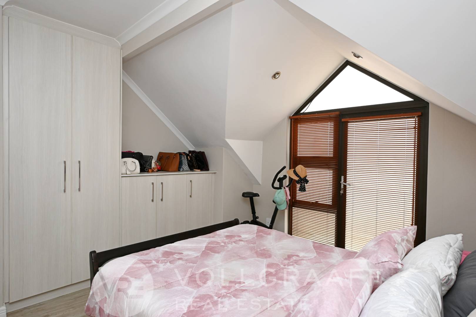 Upstairs, you'll find well-appointed bedrooms. The guest bedroom features a charming balcony. The main bedroom has an en-suite bathroom.