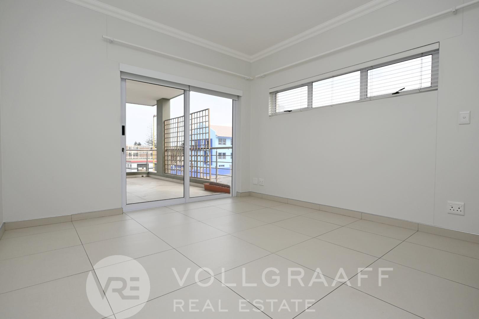 This second-floor apartment in a secure complex in the heart of Swakopmund is available to rent as of the 1st of April 2026.