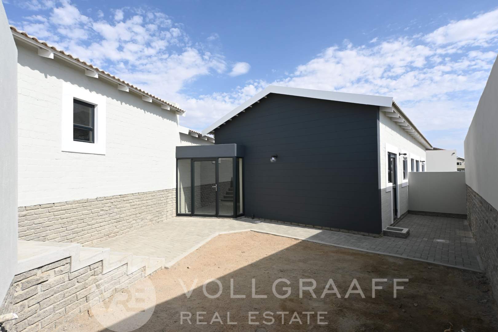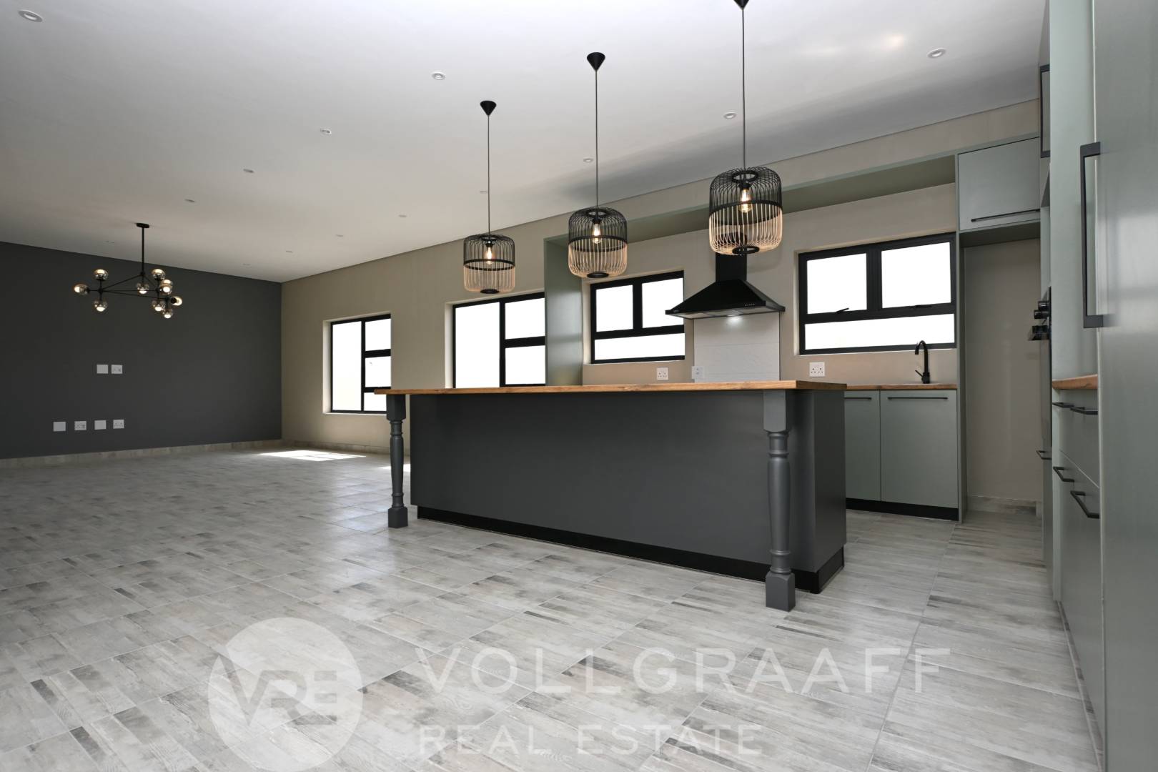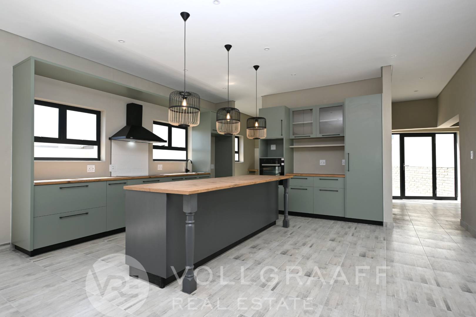The living area is spacious and inviting, complete with an indoor braai for delightful gatherings. The beautiful central island steals the spotlight, adorned with hanging lights and exquisite fittings and cupboards. A prep bowl is included for easy rinsing, while a separate scullery ensures that your dishes remain hidden while entertaining your envy-inducing friends and family in your gorgeous new home.