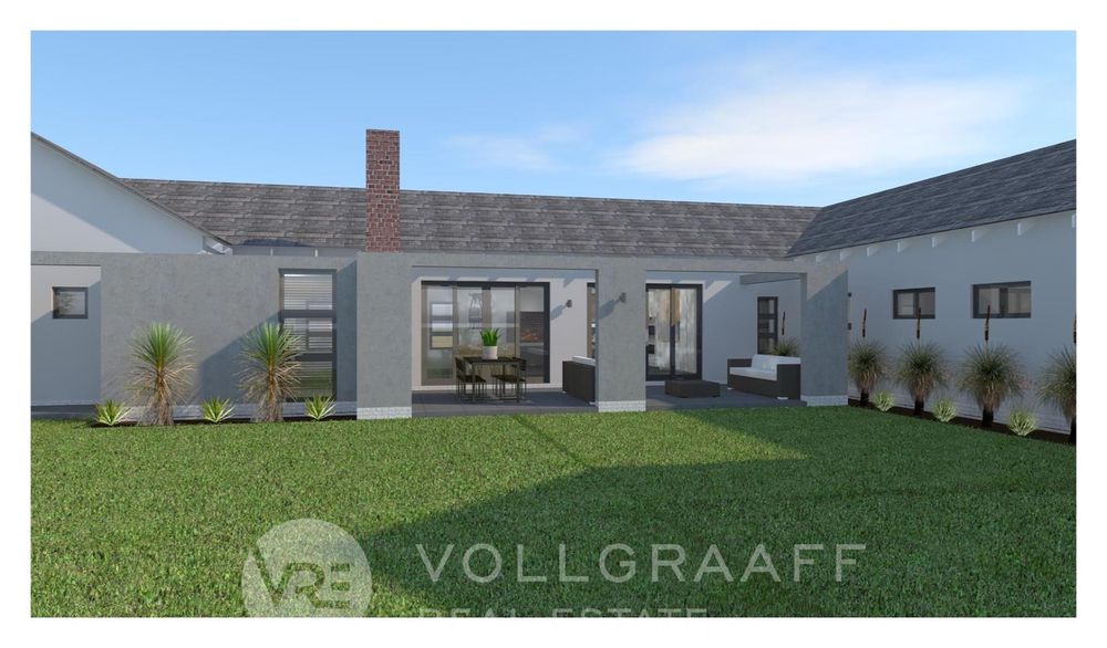 The kitchen itself is sleek yet practical, offering ample counter space, a tucked-away scullery, and a natural connection to the living areas. Just beyond the glass doors, a generous patio awaits — complete with a open braai and space for outdoor dining and lounging. It’s the kind of setting that makes you want to slow down, light a fire, and enjoy long summer evenings under the open sky.