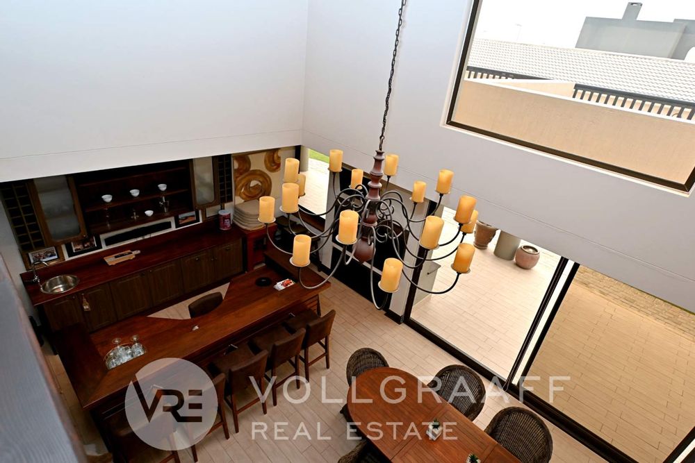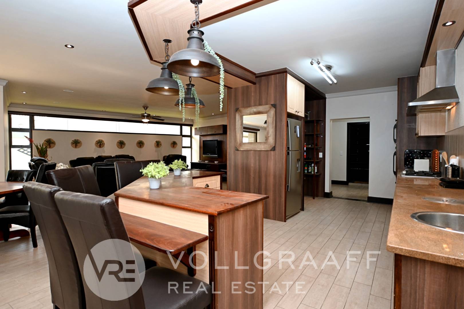 As you step inside, you are immediately drawn to the heart of the home—an entertainer’s dream. Rich wood finishes set the tone in the stylish dining and bar area, where natural light spills in through expansive sliding doors. These doors open onto a welcoming patio, inviting the outdoors in and creating the perfect space for long, laughter-filled gatherings or quiet evenings under the stars.