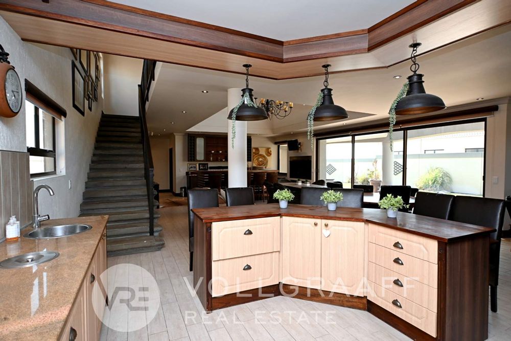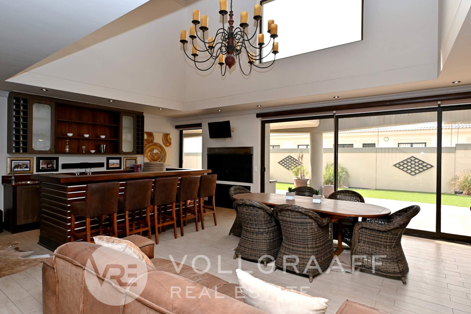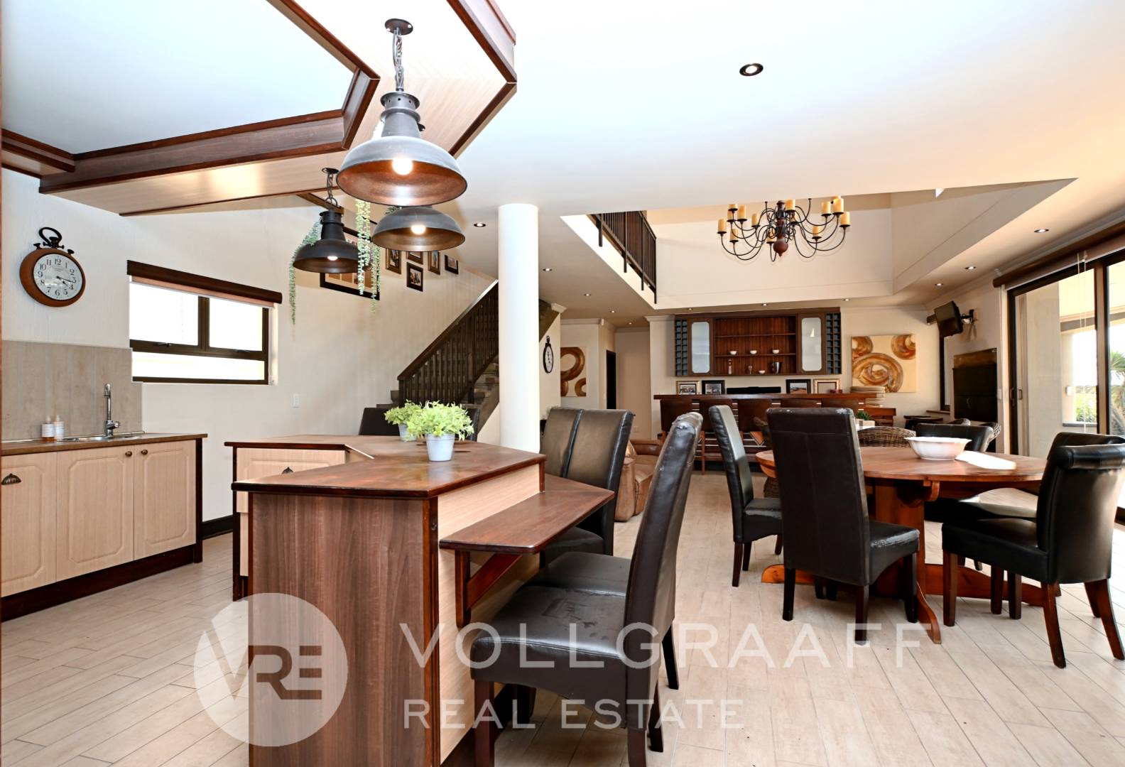 The open-plan layout is both functional and inviting, seamlessly connecting the living, dining, and kitchen areas. The well-appointed kitchen is as practical as it is beautiful, designed to make every meal a delight. Whether it’s a cozy family breakfast or a lavish dinner with friends, this space brings people together with ease.