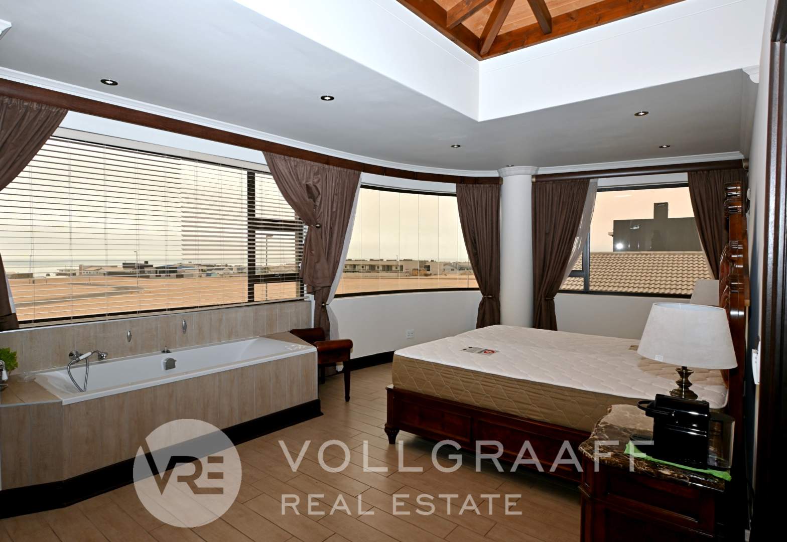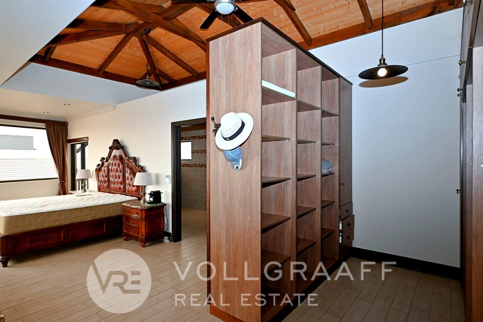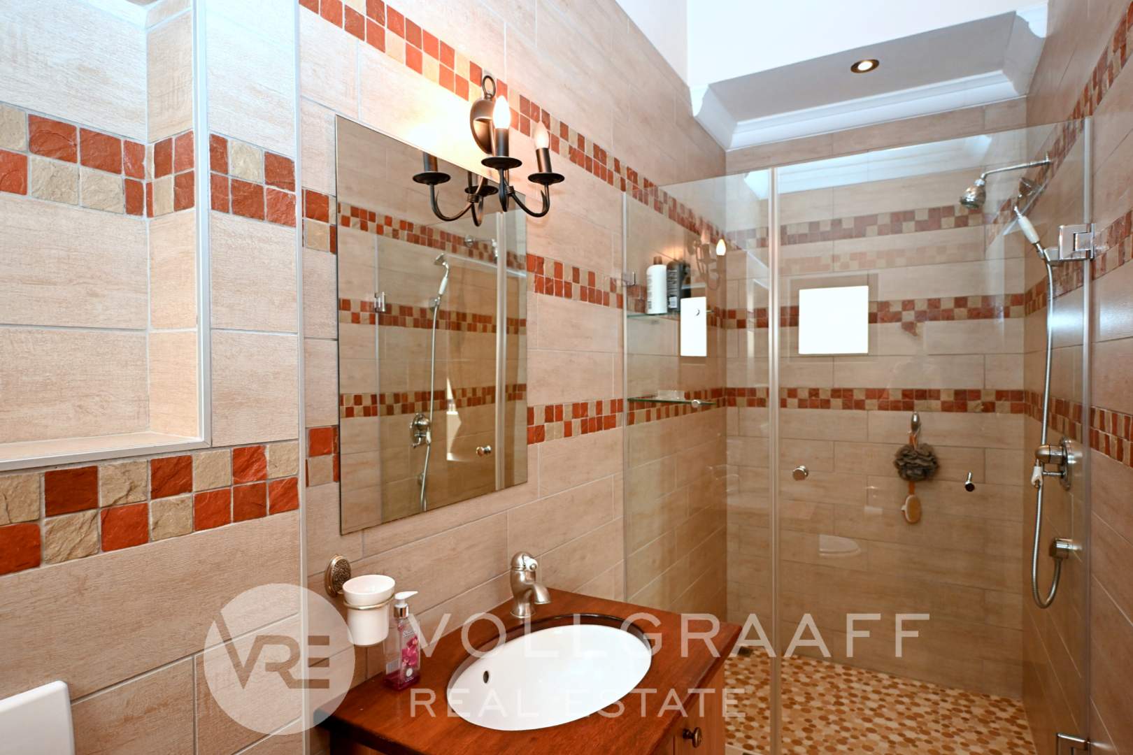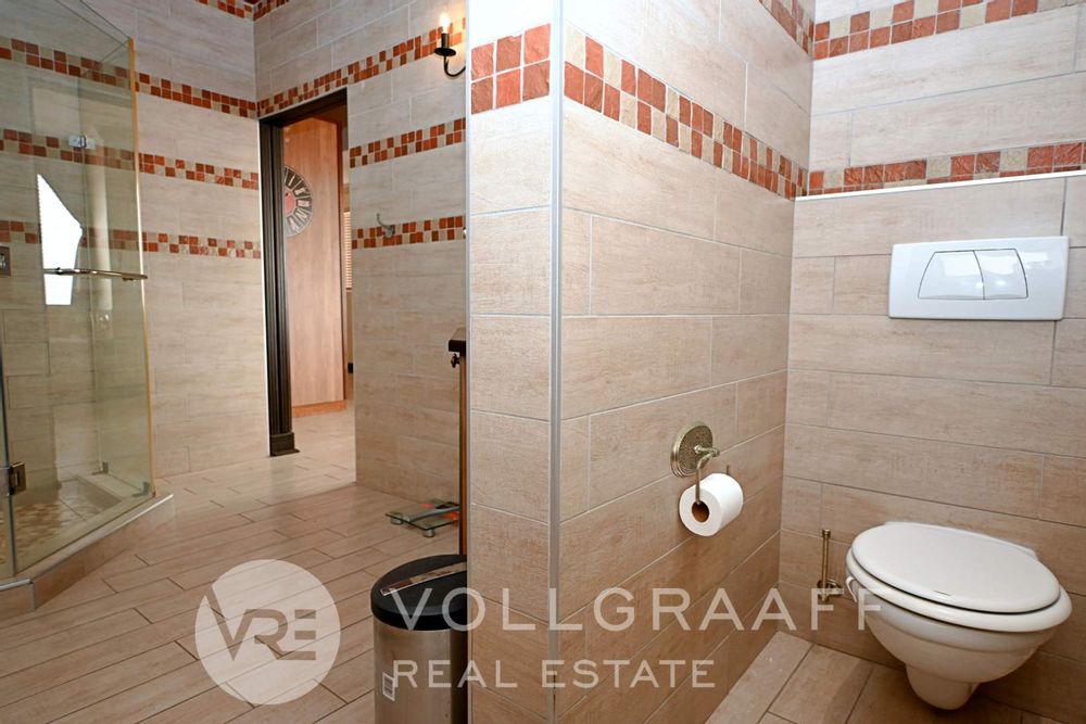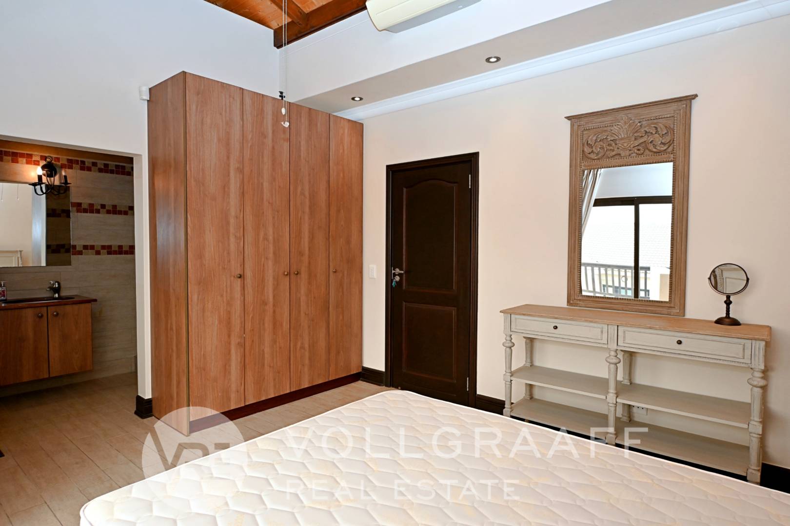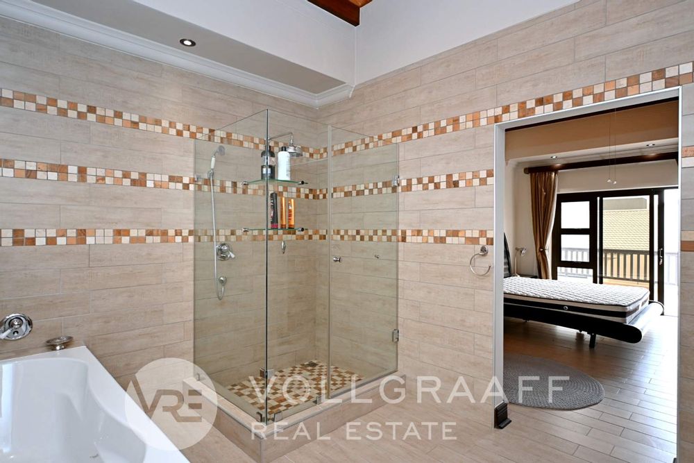 The master suite is a true retreat—an expansive, sun-drenched space with an open, spa-like bath where you can soak in the peaceful atmosphere while gazing at distant sea views. A walk-in wardrobe provides ample space for all your essentials, and an additional room offers versatility as a home gym, extra storage, or a dressing area. The en-suite bathroom, complete with a sleek, modern shower, completes this luxurious escape.
