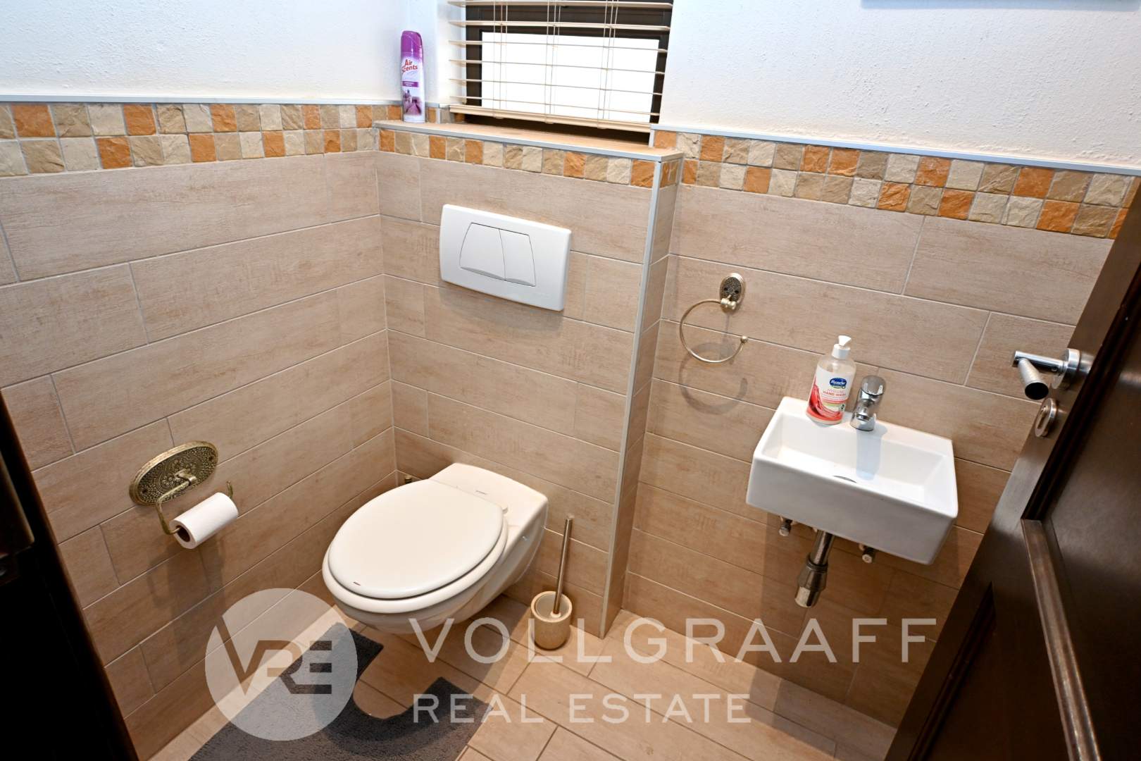 On the ground floor, a thoughtfully placed guest bedroom with its own en-suite bathroom provides a private retreat—ideal for visiting family and friends who appreciate comfort and convenience.
