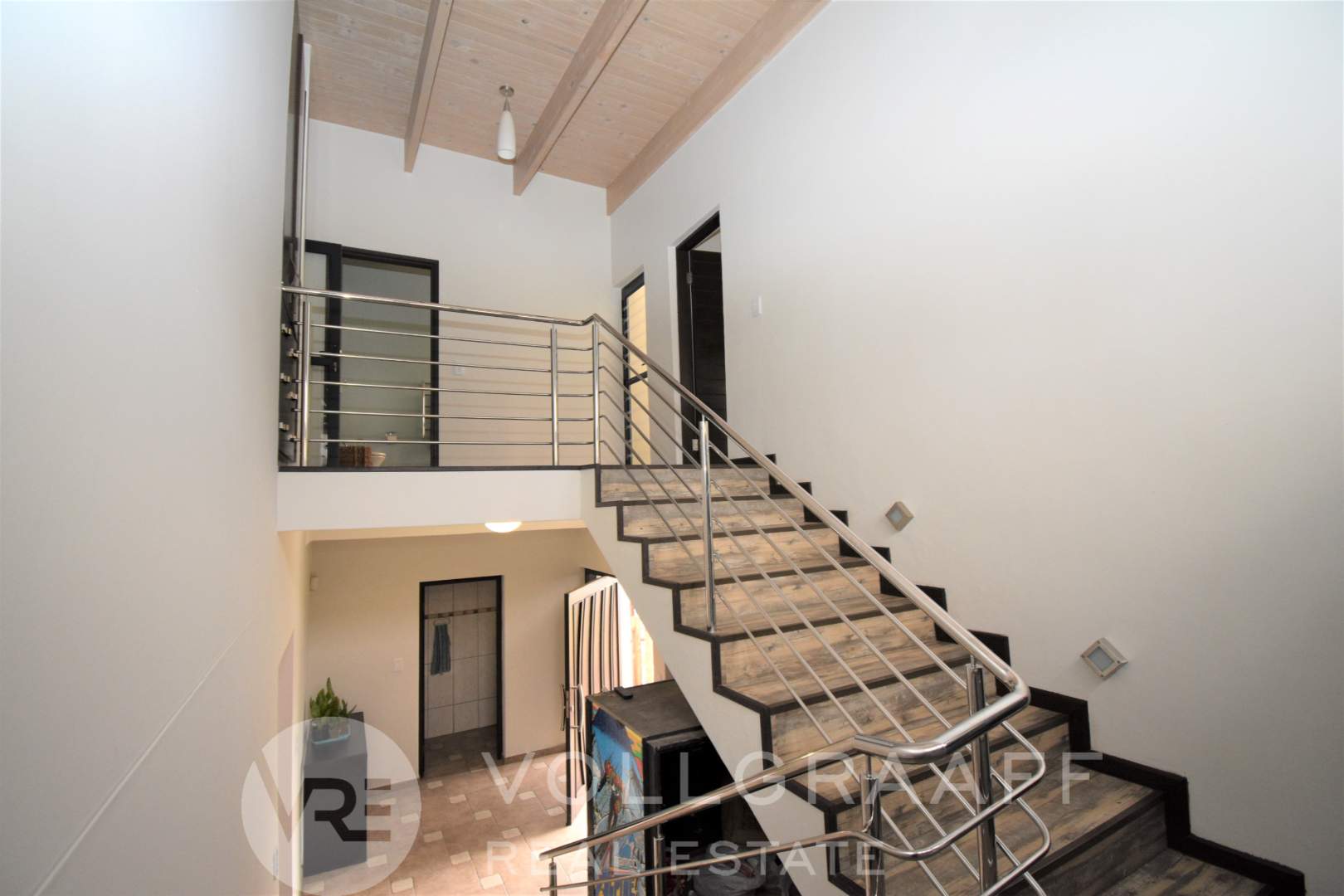 What truly sets this property apart are the entertainment possibilities. An indoor entertainment room with a built-in bar creates the perfect setting for social occasions, while indoor and outdoor braai areas allow for year-round hosting. Step outside onto the patio, enjoy the fresh air from one of the two balconies, or make use of the rooftop terrace for elevated views and relaxed evenings.
